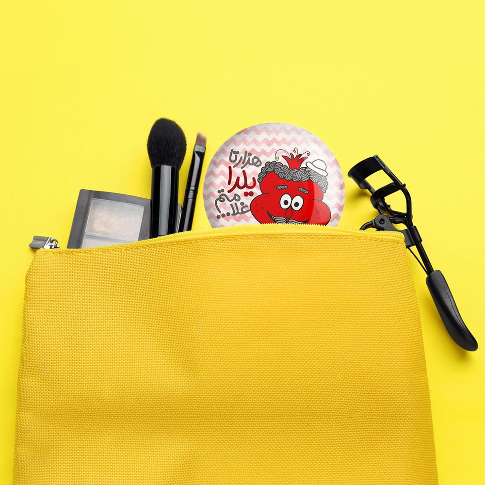 آینه های جیبی شب یلدا خندالو دایره ای به قطر 7.5 سانتی متر می باشد که نه خیلی بزرگ و غیر قابل استفاده در کیف آرایشی ست و نه خیلی کوچک که تصویر خاصی در آن مشاهده نشود. سایزی استاندارد و کارآمد دارد و مناسب قرار گیری در کیف لوازم آرایش و کیف های کوچک دستی نیز هست.
