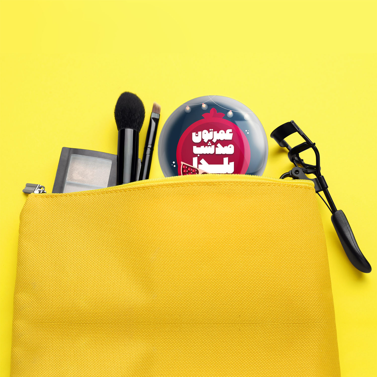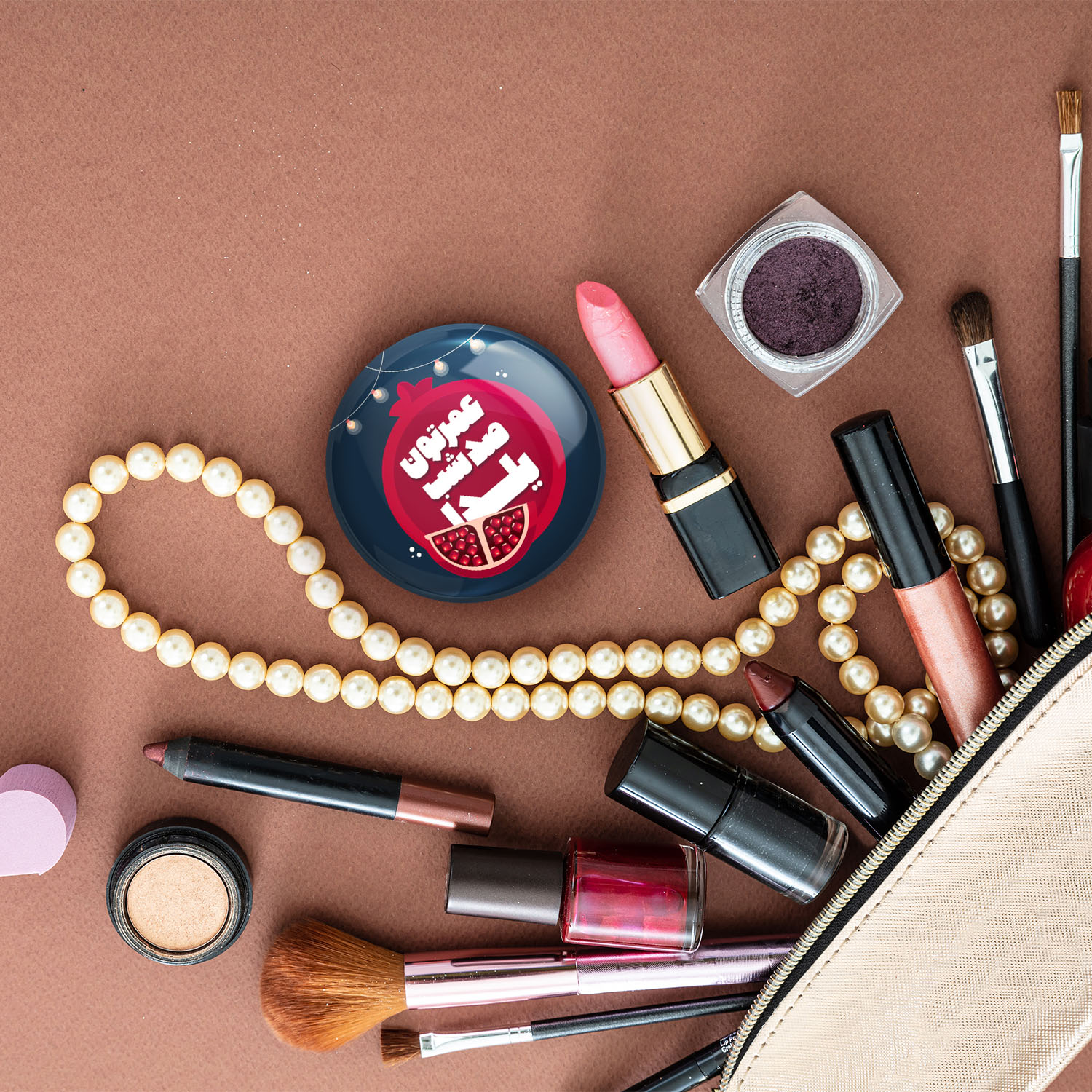 آینه های جیبی شب یلدا خندالو دایره ای به قطر 7.5 سانتی متر می باشد که نه خیلی بزرگ و غیر قابل استفاده در کیف آرایشی ست و نه خیلی کوچک که تصویر خاصی در آن مشاهده نشود. سایزی استاندارد و کارآمد دارد و مناسب قرار گیری در کیف لوازم آرایش و کیف های کوچک دستی نیز هست.
