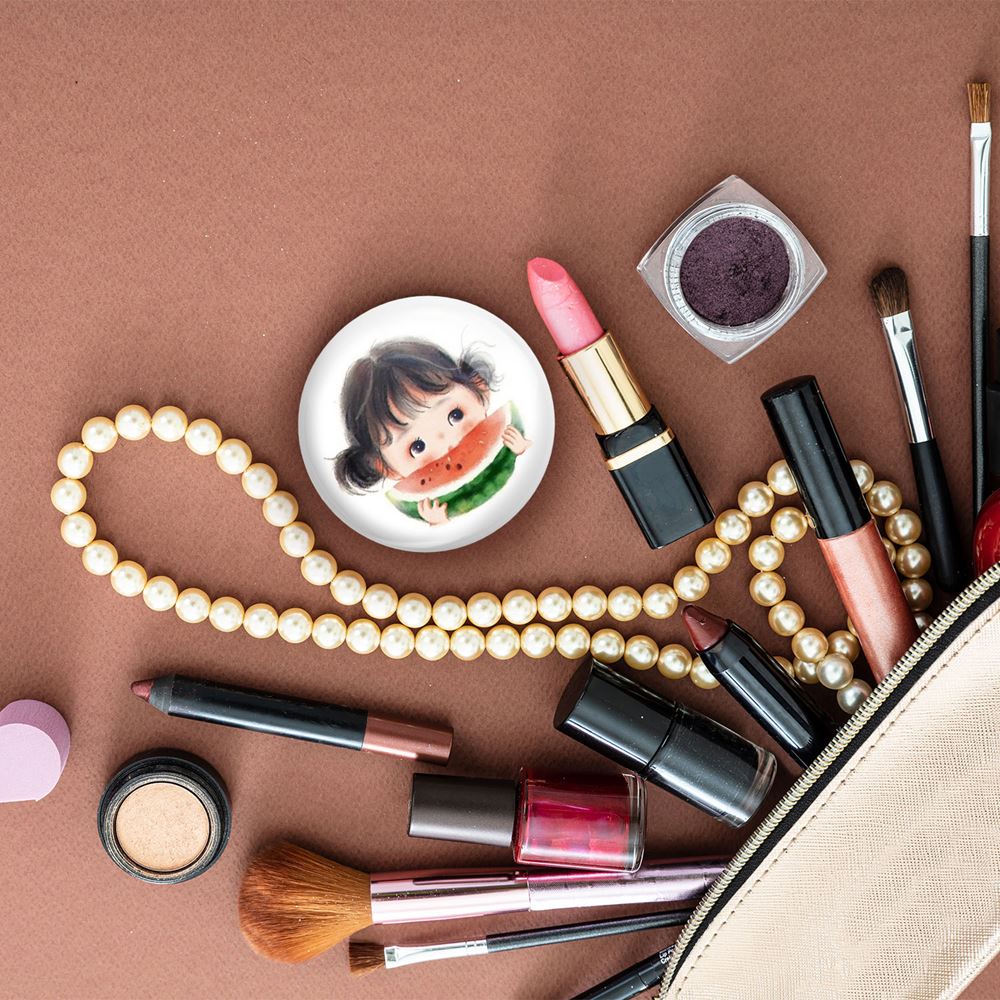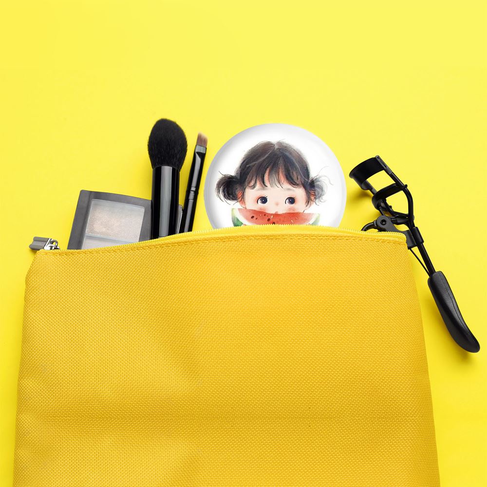 آینه های جیبی شب یلدا خندالو دایره ای به قطر 7.5 سانتی متر می باشد که نه خیلی بزرگ و غیر قابل استفاده در کیف آرایشی ست و نه خیلی کوچک که تصویر خاصی در آن مشاهده نشود. سایزی استاندارد و کارآمد دارد و مناسب قرار گیری در کیف لوازم آرایش و کیف های کوچک دستی نیز هست.