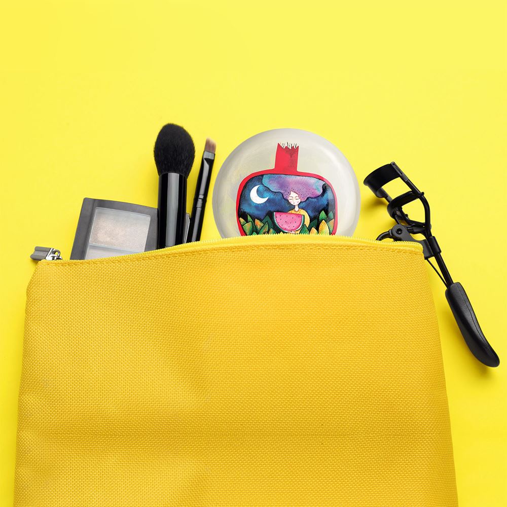 آینه های جیبی شب یلدا خندالو دایره ای به قطر 7.5 سانتی متر می باشد که نه خیلی بزرگ و غیر قابل استفاده در کیف آرایشی ست و نه خیلی کوچک که تصویر خاصی در آن مشاهده نشود. سایزی استاندارد و کارآمد دارد و مناسب قرار گیری در کیف لوازم آرایش و کیف های کوچک دستی نیز هست.