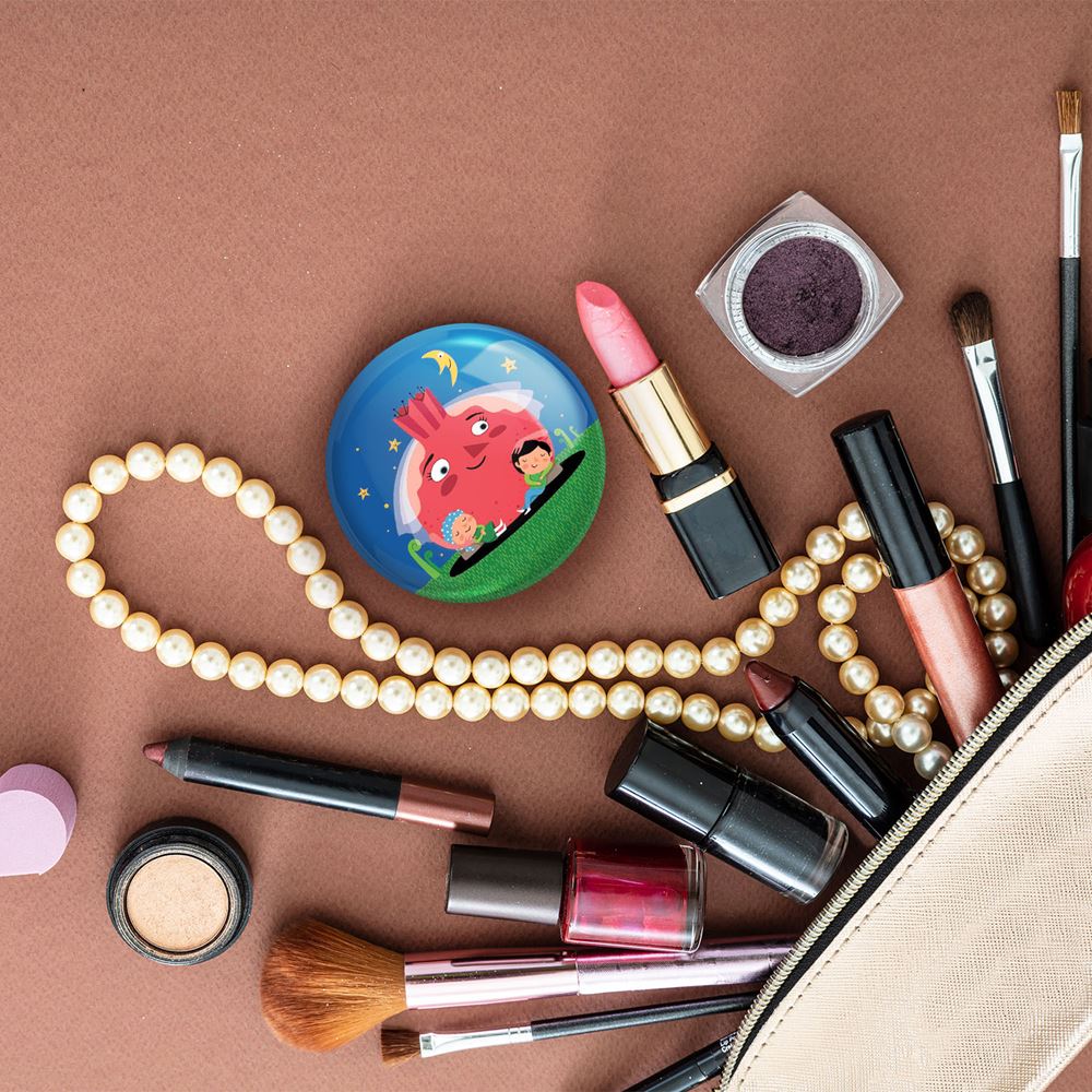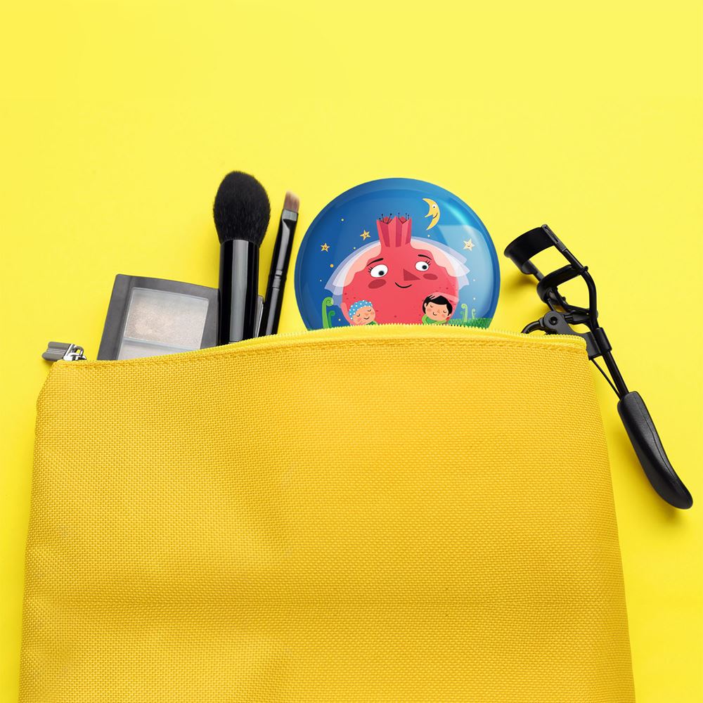 آینه های جیبی شب یلدا خندالو دایره ای به قطر 7.5 سانتی متر می باشد که نه خیلی بزرگ و غیر قابل استفاده در کیف آرایشی ست و نه خیلی کوچک که تصویر خاصی در آن مشاهده نشود. سایزی استاندارد و کارآمد دارد و مناسب قرار گیری در کیف لوازم آرایش و کیف های کوچک دستی نیز هست.