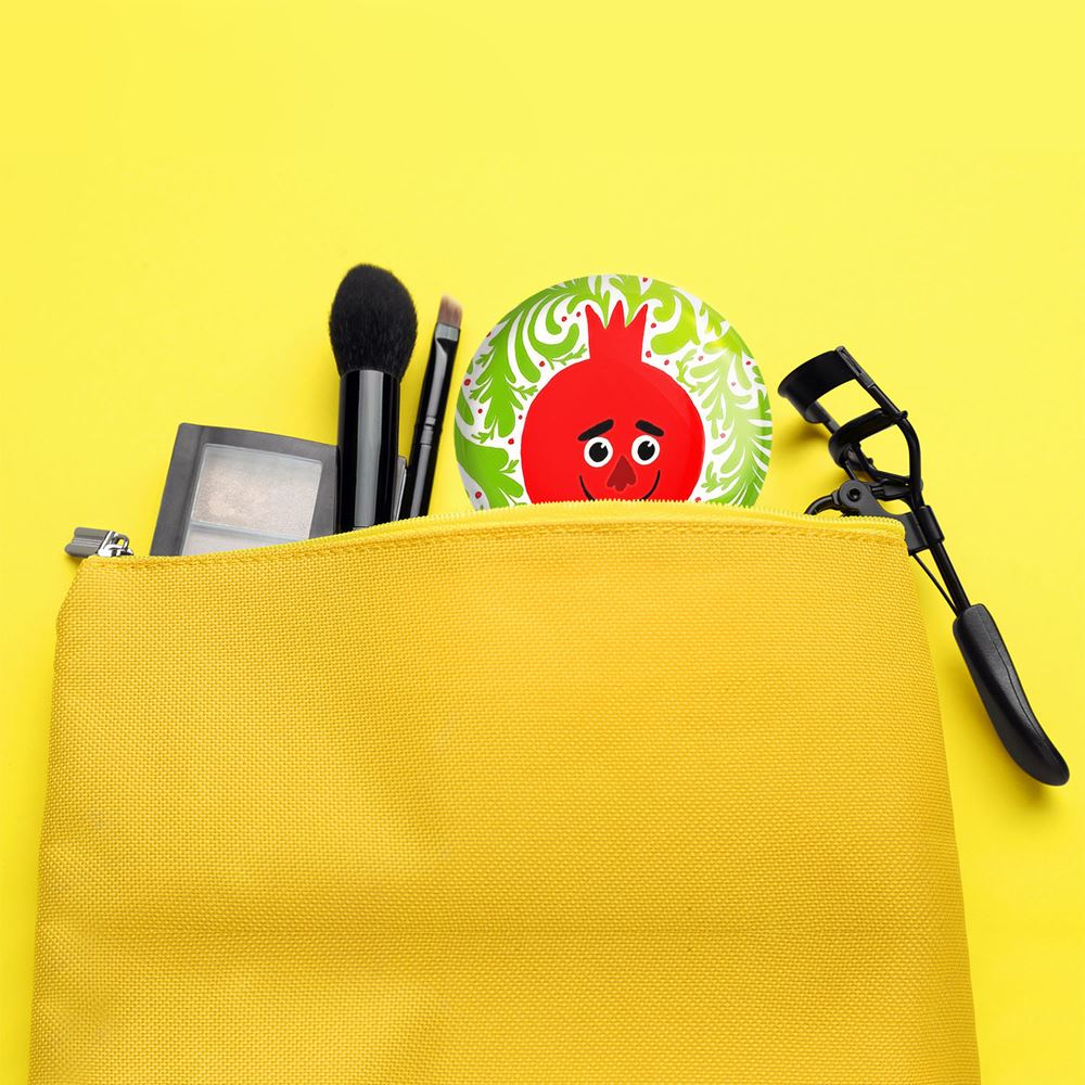 آینه های جیبی شب یلدا خندالو دایره ای به قطر 7.5 سانتی متر می باشد که نه خیلی بزرگ و غیر قابل استفاده در کیف آرایشی ست و نه خیلی کوچک که تصویر خاصی در آن مشاهده نشود. سایزی استاندارد و کارآمد دارد و مناسب قرار گیری در کیف لوازم آرایش و کیف های کوچک دستی نیز هست.