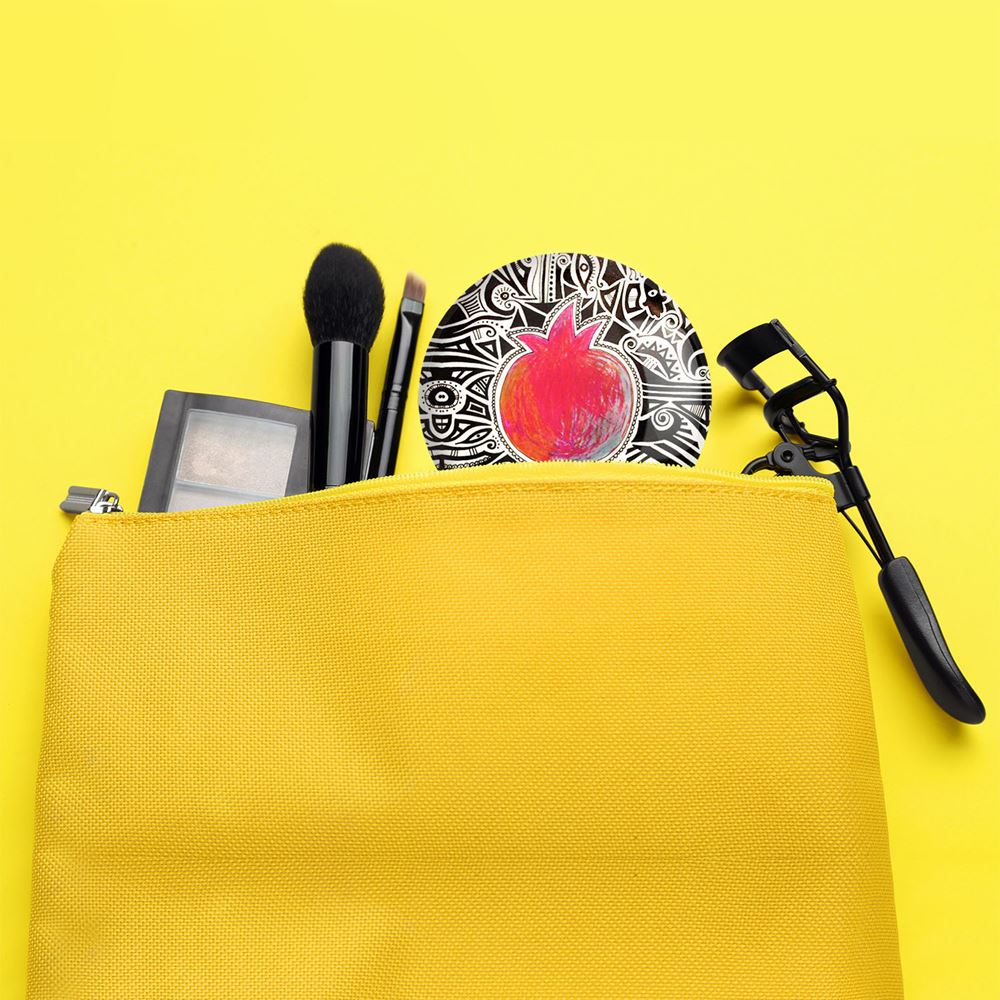 آینه های جیبی شب یلدا خندالو دایره ای به قطر 7.5 سانتی متر می باشد که نه خیلی بزرگ و غیر قابل استفاده در کیف آرایشی ست و نه خیلی کوچک که تصویر خاصی در آن مشاهده نشود. سایزی استاندارد و کارآمد دارد و مناسب قرار گیری در کیف لوازم آرایش و کیف های کوچک دستی نیز هست.
