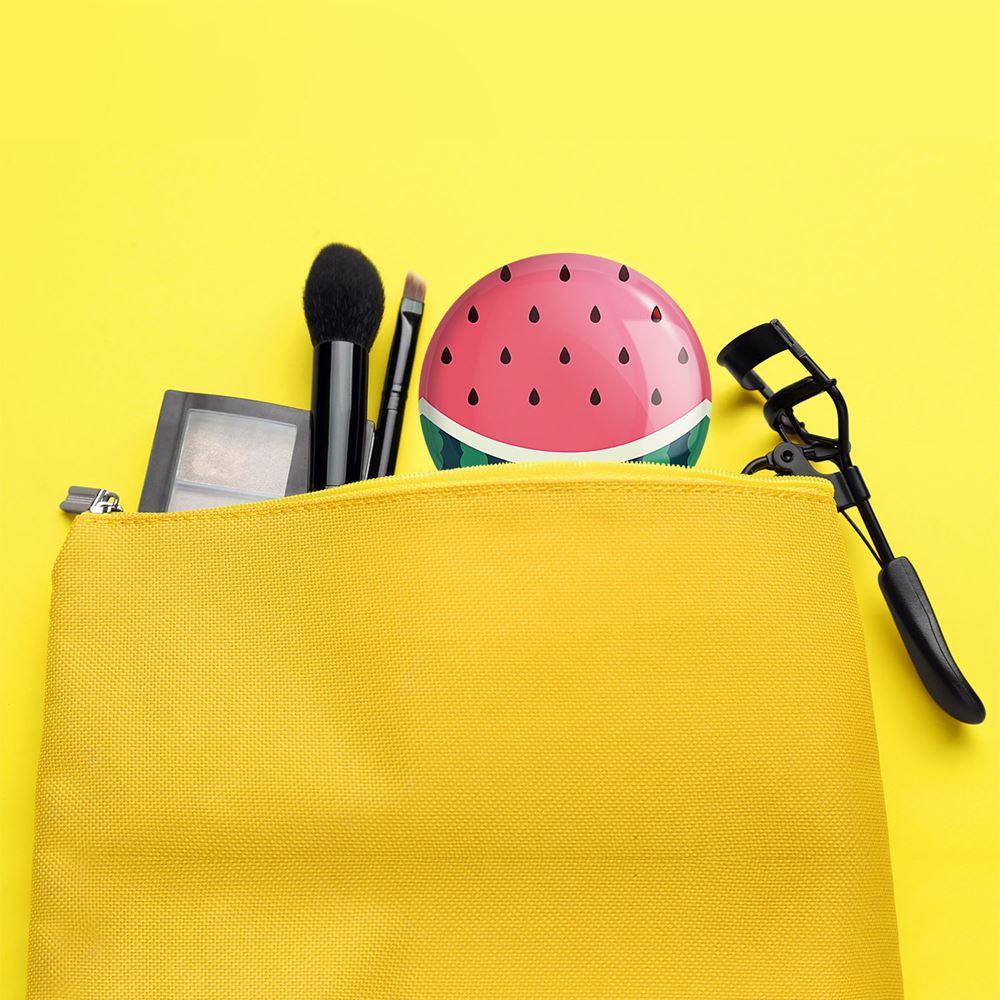 آینه های جیبی شب یلدا خندالو دایره ای به قطر 7.5 سانتی متر می باشد که نه خیلی بزرگ و غیر قابل استفاده در کیف آرایشی ست و نه خیلی کوچک که تصویر خاصی در آن مشاهده نشود. سایزی استاندارد و کارآمد دارد و مناسب قرار گیری در کیف لوازم آرایش و کیف های کوچک دستی نیز هست.
