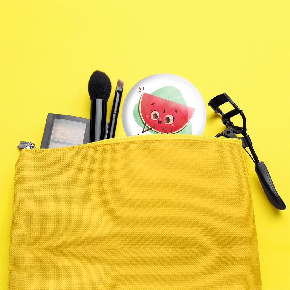 آینه های جیبی شب یلدا خندالو دایره ای به قطر 7.5 سانتی متر می باشد که نه خیلی بزرگ و غیر قابل استفاده در کیف آرایشی ست و نه خیلی کوچک که تصویر خاصی در آن مشاهده نشود. سایزی استاندارد و کارآمد دارد و مناسب قرار گیری در کیف لوازم آرایش و کیف های کوچک دستی نیز هست.