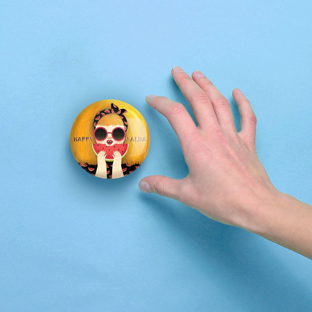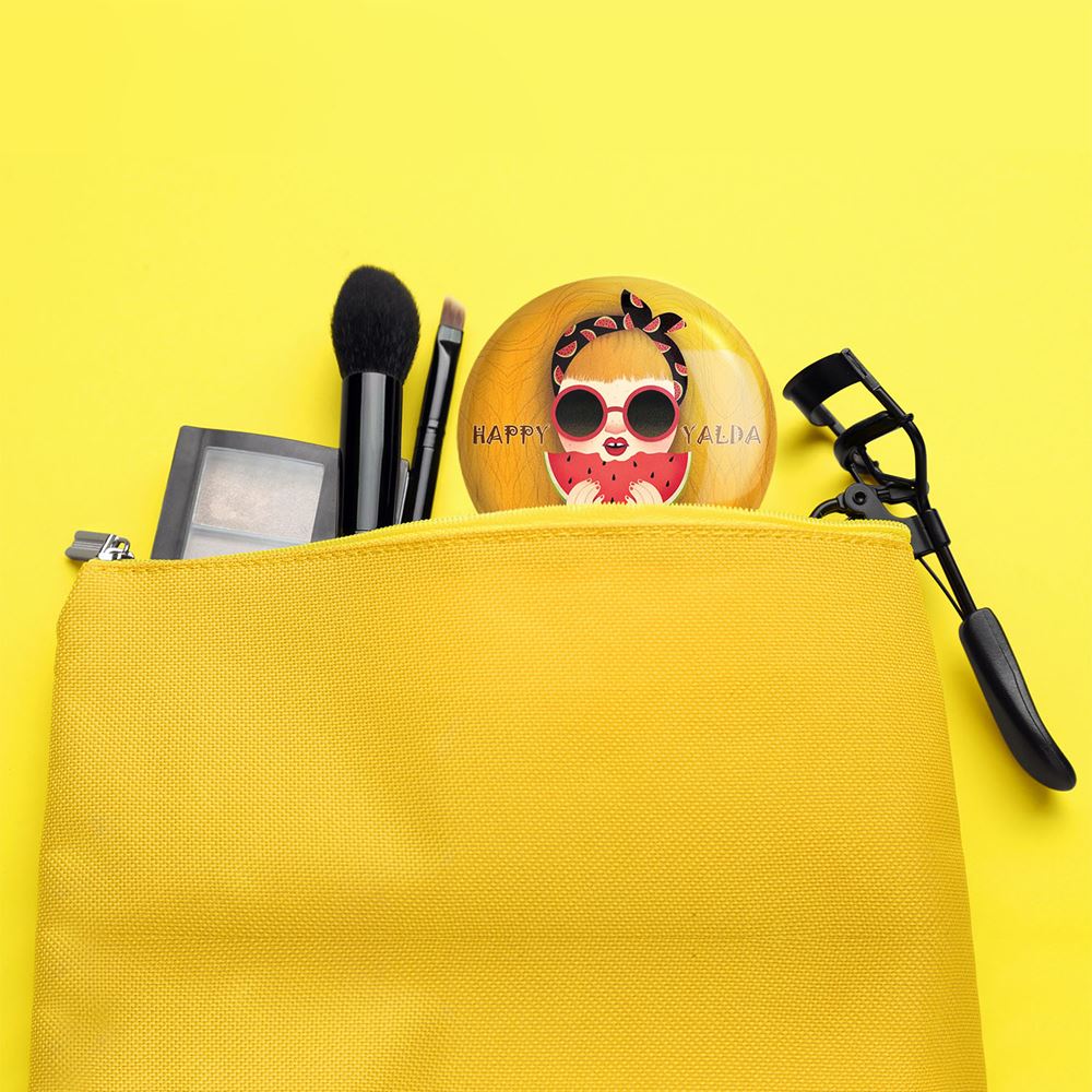 آینه های جیبی شب یلدا خندالو دایره ای به قطر 7.5 سانتی متر می باشد که نه خیلی بزرگ و غیر قابل استفاده در کیف آرایشی ست و نه خیلی کوچک که تصویر خاصی در آن مشاهده نشود. سایزی استاندارد و کارآمد دارد و مناسب قرار گیری در کیف لوازم آرایش و کیف های کوچک دستی نیز هست.