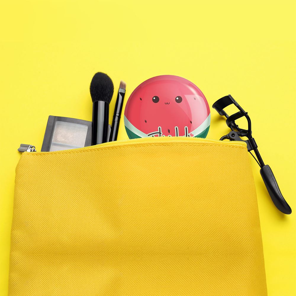 آینه های جیبی شب یلدا خندالو دایره ای به قطر 7.5 سانتی متر می باشد که نه خیلی بزرگ و غیر قابل استفاده در کیف آرایشی ست و نه خیلی کوچک که تصویر خاصی در آن مشاهده نشود. سایزی استاندارد و کارآمد دارد و مناسب قرار گیری در کیف لوازم آرایش و کیف های کوچک دستی نیز هست.