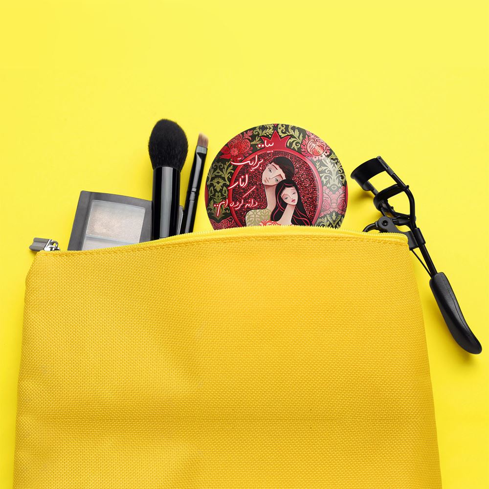 آینه های جیبی شب یلدا خندالو دایره ای به قطر 7.5 سانتی متر می باشد که نه خیلی بزرگ و غیر قابل استفاده در کیف آرایشی ست و نه خیلی کوچک که تصویر خاصی در آن مشاهده نشود. سایزی استاندارد و کارآمد دارد و مناسب قرار گیری در کیف لوازم آرایش و کیف های کوچک دستی نیز هست.