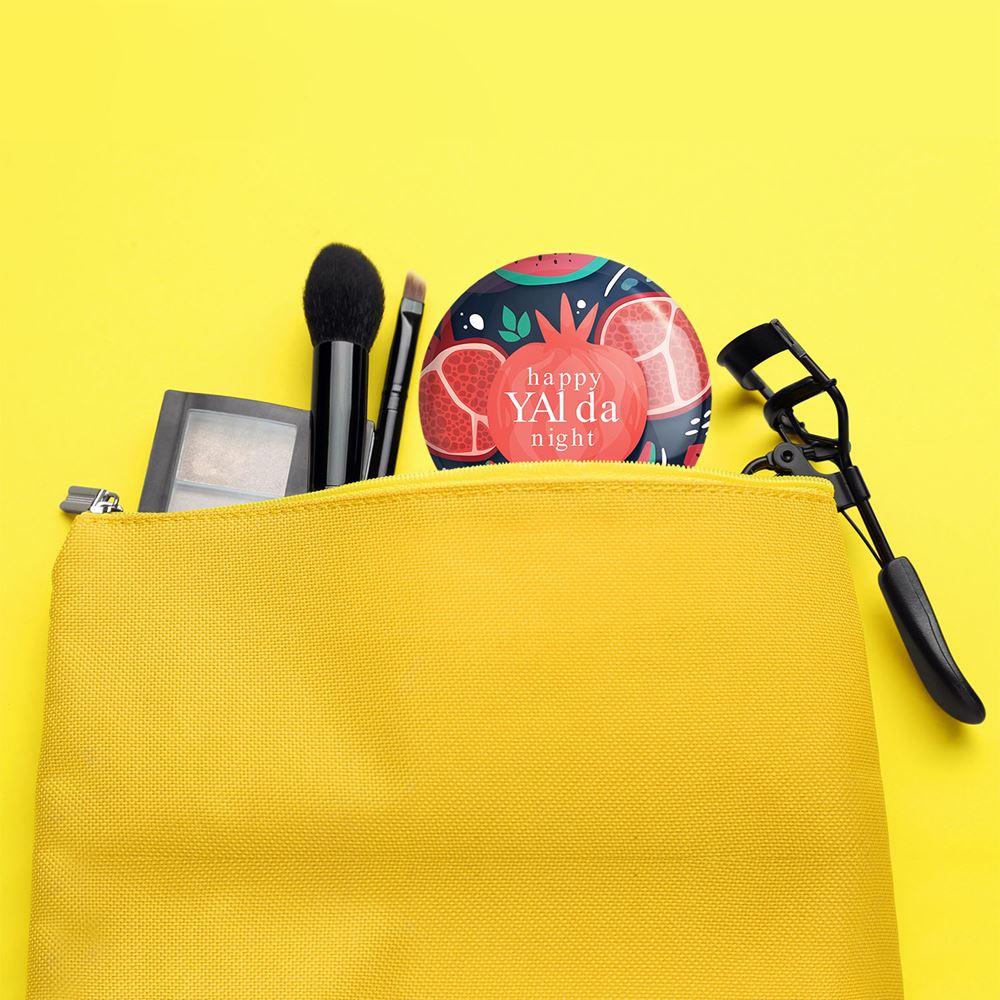 آینه های جیبی شب یلدا خندالو دایره ای به قطر 7.5 سانتی متر می باشد که نه خیلی بزرگ و غیر قابل استفاده در کیف آرایشی ست و نه خیلی کوچک که تصویر خاصی در آن مشاهده نشود. سایزی استاندارد و کارآمد دارد و مناسب قرار گیری در کیف لوازم آرایش و کیف های کوچک دستی نیز هست.