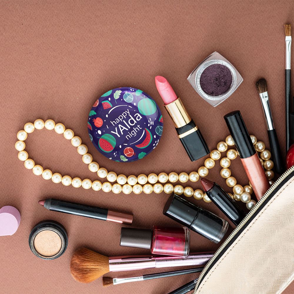 آینه های جیبی شب یلدا خندالو دایره ای به قطر 7.5 سانتی متر می باشد که نه خیلی بزرگ و غیر قابل استفاده در کیف آرایشی ست و نه خیلی کوچک که تصویر خاصی در آن مشاهده نشود. سایزی استاندارد و کارآمد دارد و مناسب قرار گیری در کیف لوازم آرایش و کیف های کوچک دستی نیز هست.