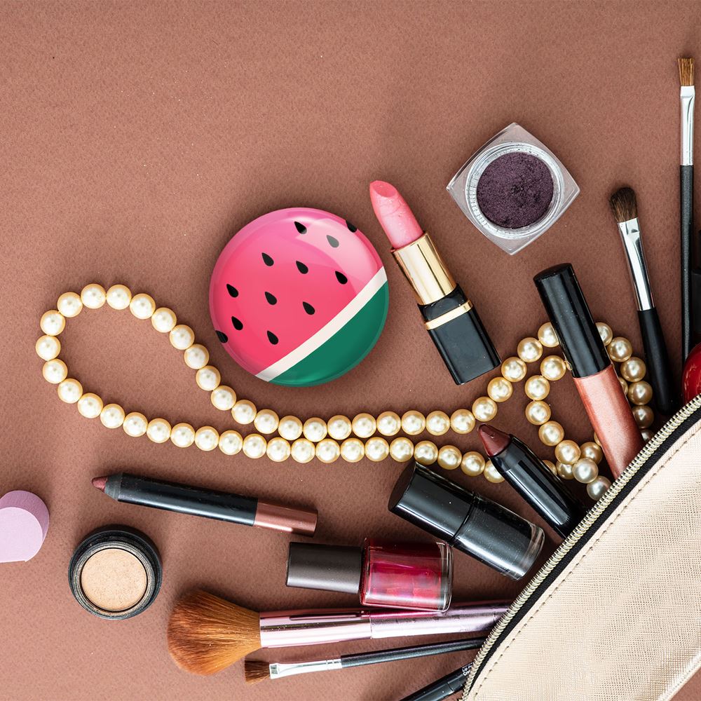 آینه های جیبی شب یلدا خندالو دایره ای به قطر 7.5 سانتی متر می باشد که نه خیلی بزرگ و غیر قابل استفاده در کیف آرایشی ست و نه خیلی کوچک که تصویر خاصی در آن مشاهده نشود. سایزی استاندارد و کارآمد دارد و مناسب قرار گیری در کیف لوازم آرایش و کیف های کوچک دستی نیز هست.