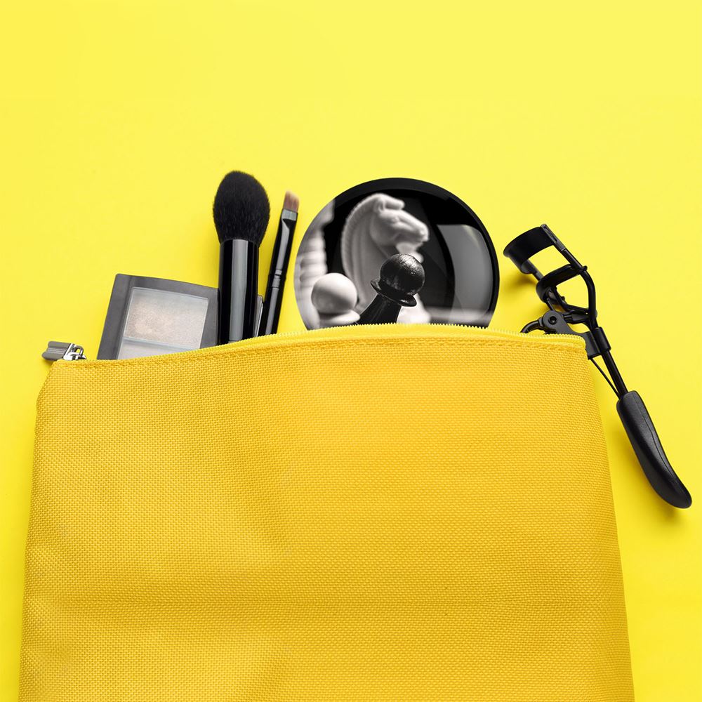 آینه های جیبی شطرنج خندالو دایره ای به قطر 7.5 سانتی متر می باشد که نه خیلی بزرگ و غیر قابل استفاده در کیف آرایشی ست و نه خیلی کوچک که تصویر خاصی در آن مشاهده نشود. سایزی استاندارد و کارآمد دارد و مناسب قرار گیری در کیف لوازم آرایش و کیف های کوچک دستی نیز هست.