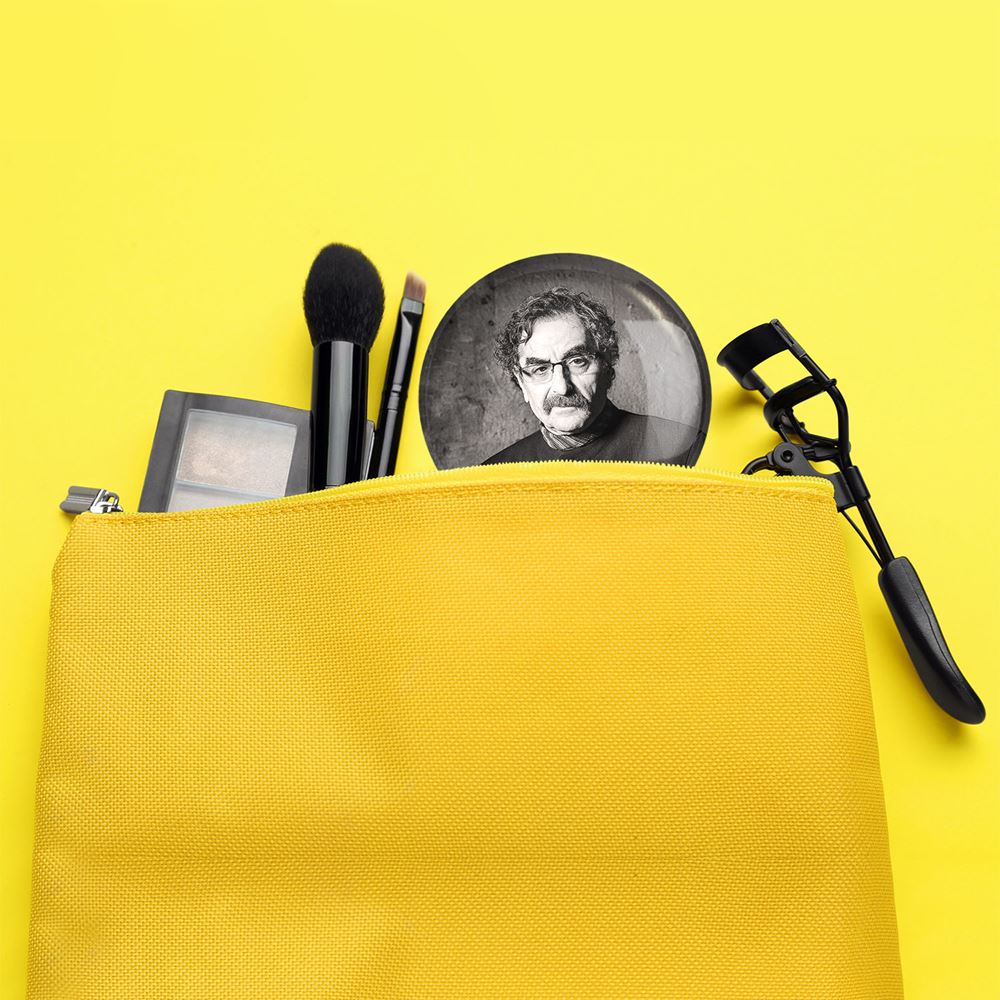 آینه های جیبی شهرام ناظری خندالو دایره ای به قطر 7.5 سانتی متر می باشد که نه خیلی بزرگ و غیر قابل استفاده در کیف آرایشی ست و نه خیلی کوچک که تصویر خاصی در آن مشاهده نشود. سایزی استاندارد و کارآمد دارد و مناسب قرار گیری در کیف لوازم آرایش و کیف های کوچک دستی نیز هست. بدنه ی آینه جیبی شهرام ناظری در قسمتی که آینه را در بر گرفته فلزی بوده و ظاهر براق و بسیار زیبایی دارد. چاپ طرح در پشت آینه بوسیله چاپگرهای دیجیتال شش رنگ با شفافیت و کیفیتی مثال زدنی انجام گرفته و با روکش لمینت حرارتی پوشیده شده که در مقابل آسیب و خط و خش مقاوم بوده و کیفیت بالایی دارد. آینه های جیبی شهرام ناظری خندالو با تنوع طرحی بسیار بالا، سلیقه هر نوع مخاطبی را تامین میکند.