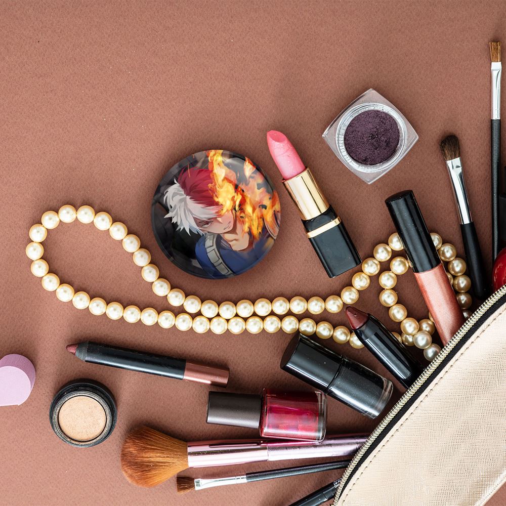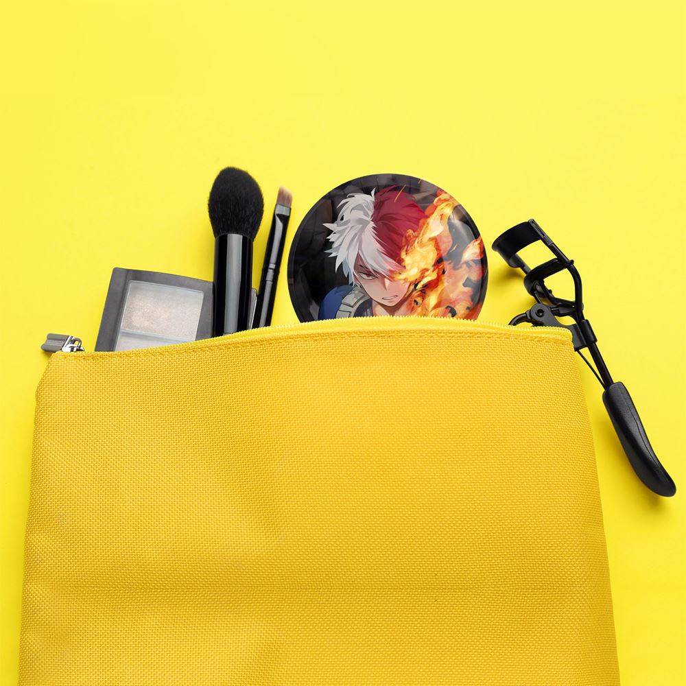 آینه های جیبی شوتو انیمه آکادمی قهرمان من خندالو دایره ای به قطر 7.5 سانتی متر می باشد که نه خیلی بزرگ و غیر قابل استفاده در کیف آرایشی ست و نه خیلی کوچک که تصویر خاصی در آن مشاهده نشود. سایزی استاندارد و کارآمد دارد و مناسب قرار گیری در کیف لوازم آرایش و کیف های کوچک دستی نیز هست. بدنه ی آینه جیبی شوتو انیمه آکادمی قهرمان من در قسمتی که آینه را در بر گرفته فلزی بوده و ظاهر براق و بسیار زیبایی دارد. چاپ طرح در پشت آینه بوسیله چاپگرهای دیجیتال شش رنگ با شفافیت و کیفیتی مثال زدنی انجام گرفته و با روکش لمینت حرارتی پوشیده شده که در مقابل آسیب و خط و خش مقاوم بوده و کیفیت بالایی دارد. آینه های جیبی شوتو انیمه آکادمی قهرمان من خندالو با تنوع طرحی بسیار بالا، سلیقه هر نوع مخاطبی را تامین میکند.