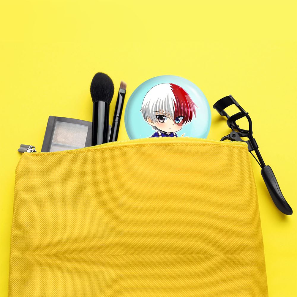 آینه های جیبی شوتو تودوروکی انیمه آکادمی قهرمان من My Hero Academia خندالو دایره ای به قطر 7.5 سانتی متر می باشد که نه خیلی بزرگ و غیر قابل استفاده در کیف آرایشی ست و نه خیلی کوچک که تصویر خاصی در آن مشاهده نشود. سایزی استاندارد و کارآمد دارد و مناسب قرار گیری در کیف لوازم آرایش و کیف های کوچک دستی نیز هست. بدنه ی آینه جیبی شوتو تودوروکی انیمه آکادمی قهرمان من My Hero Academia در قسمتی که آینه را در بر گرفته فلزی بوده و ظاهر براق و بسیار زیبایی دارد. چاپ طرح در پشت آینه بوسیله چاپگرهای دیجیتال شش رنگ با شفافیت و کیفیتی مثال زدنی انجام گرفته و با روکش لمینت حرارتی پوشیده شده که در مقابل آسیب و خط و خش مقاوم بوده و کیفیت بالایی دارد. آینه های جیبی شوتو تودوروکی انیمه آکادمی قهرمان من My Hero Academia خندالو با تنوع طرحی بسیار بالا، سلیقه هر نوع مخاطبی را تامین میکند.