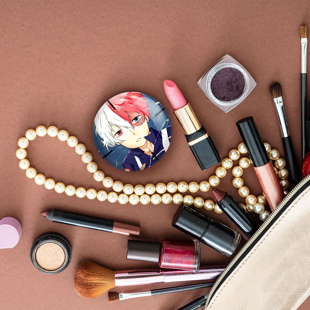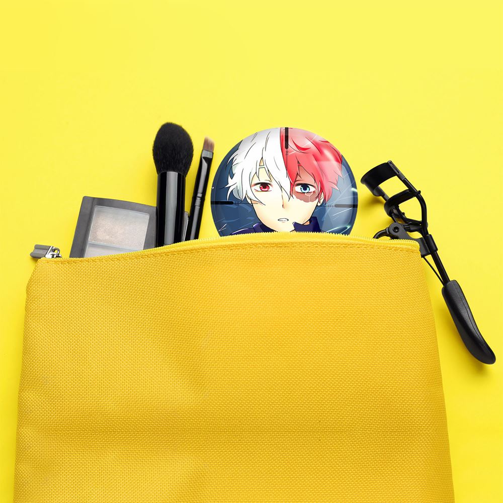 آینه های جیبی شوتو تودوروکی انیمه آکادمی قهرمان من خندالو دایره ای به قطر 7.5 سانتی متر می باشد که نه خیلی بزرگ و غیر قابل استفاده در کیف آرایشی ست و نه خیلی کوچک که تصویر خاصی در آن مشاهده نشود. سایزی استاندارد و کارآمد دارد و مناسب قرار گیری در کیف لوازم آرایش و کیف های کوچک دستی نیز هست. بدنه ی آینه جیبی شوتو تودوروکی انیمه آکادمی قهرمان من در قسمتی که آینه را در بر گرفته فلزی بوده و ظاهر براق و بسیار زیبایی دارد. چاپ طرح در پشت آینه بوسیله چاپگرهای دیجیتال شش رنگ با شفافیت و کیفیتی مثال زدنی انجام گرفته و با روکش لمینت حرارتی پوشیده شده که در مقابل آسیب و خط و خش مقاوم بوده و کیفیت بالایی دارد. آینه های جیبی شوتو تودوروکی انیمه آکادمی قهرمان من خندالو با تنوع طرحی بسیار بالا، سلیقه هر نوع مخاطبی را تامین میکند.