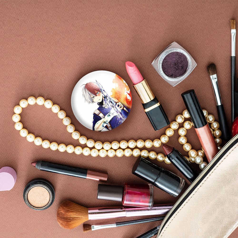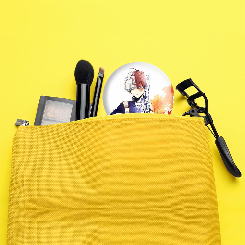 آینه های جیبی شوتو تودوروکی انیمه قهرمان من خندالو دایره ای به قطر 7.5 سانتی متر می باشد که نه خیلی بزرگ و غیر قابل استفاده در کیف آرایشی ست و نه خیلی کوچک که تصویر خاصی در آن مشاهده نشود. سایزی استاندارد و کارآمد دارد و مناسب قرار گیری در کیف لوازم آرایش و کیف های کوچک دستی نیز هست. بدنه ی آینه جیبی شوتو تودوروکی انیمه قهرمان من در قسمتی که آینه را در بر گرفته فلزی بوده و ظاهر براق و بسیار زیبایی دارد. چاپ طرح در پشت آینه بوسیله چاپگرهای دیجیتال شش رنگ با شفافیت و کیفیتی مثال زدنی انجام گرفته و با روکش لمینت حرارتی پوشیده شده که در مقابل آسیب و خط و خش مقاوم بوده و کیفیت بالایی دارد. آینه های جیبی شوتو تودوروکی انیمه قهرمان من خندالو با تنوع طرحی بسیار بالا، سلیقه هر نوع مخاطبی را تامین میکند.