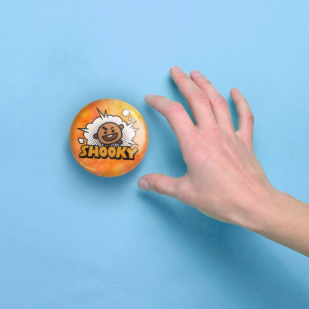 آینه های جیبی شوکی BT21 Shooky خندالو دایره ای به قطر 7.5 سانتی متر می باشد که نه خیلی بزرگ و غیر قابل استفاده در کیف آرایشی ست و نه خیلی کوچک که تصویر خاصی در آن مشاهده نشود. سایزی استاندارد و کارآمد دارد و مناسب قرار گیری در کیف لوازم آرایش و کیف های کوچک دستی نیز هست.