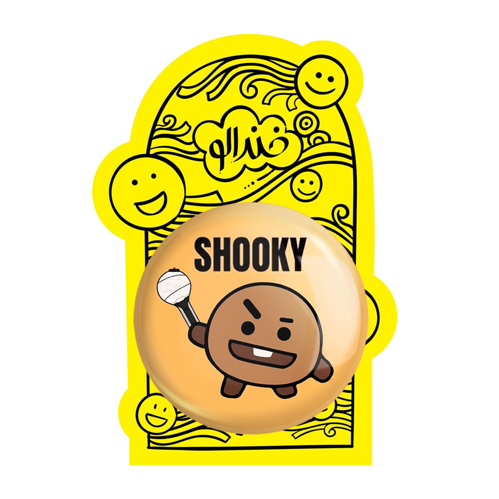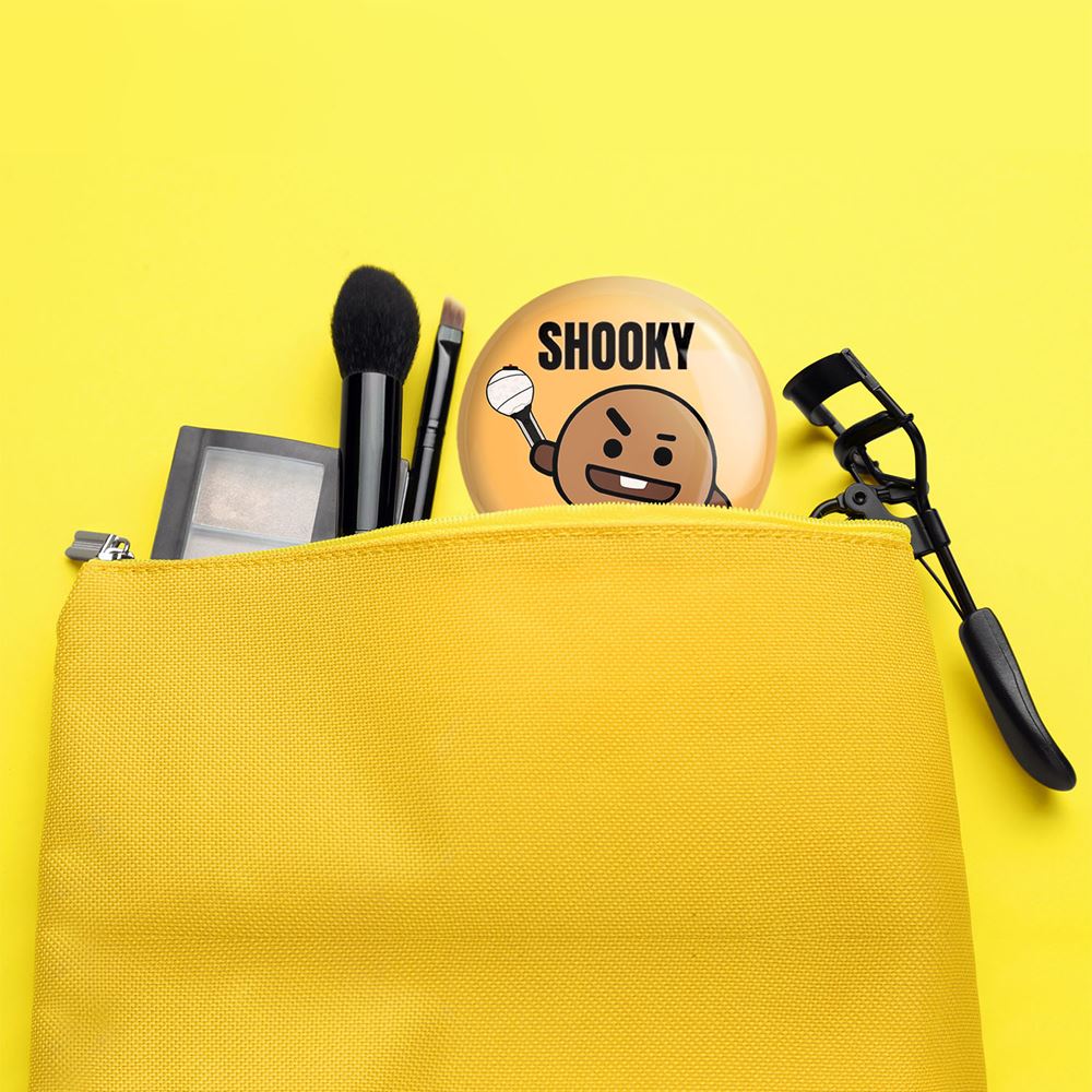 آینه های جیبی شوکی BT21 Shooky خندالو دایره ای به قطر 7.5 سانتی متر می باشد که نه خیلی بزرگ و غیر قابل استفاده در کیف آرایشی ست و نه خیلی کوچک که تصویر خاصی در آن مشاهده نشود. سایزی استاندارد و کارآمد دارد و مناسب قرار گیری در کیف لوازم آرایش و کیف های کوچک دستی نیز هست.