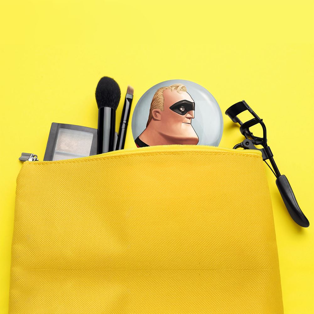 آینه های جیبی شگفت انگیزان The Incredibles خندالو دایره ای به قطر 7.5 سانتی متر می باشد که نه خیلی بزرگ و غیر قابل استفاده در کیف آرایشی ست و نه خیلی کوچک که تصویر خاصی در آن مشاهده نشود. سایزی استاندارد و کارآمد دارد و مناسب قرار گیری در کیف لوازم آرایش و کیف های کوچک دستی نیز هست.