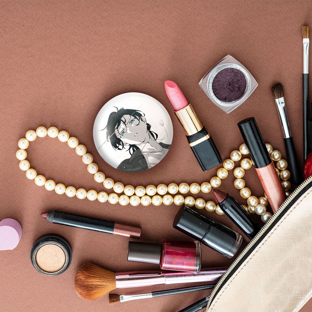 آینه های جیبی شینپی انیمه سامر تایم رندرینگ SUMMER TIME RENDERING خندالو دایره ای به قطر 7.5 سانتی متر می باشد که نه خیلی بزرگ و غیر قابل استفاده در کیف آرایشی ست و نه خیلی کوچک که تصویر خاصی در آن مشاهده نشود. سایزی استاندارد و کارآمد دارد و مناسب قرار گیری در کیف لوازم آرایش و کیف های کوچک دستی نیز هست.