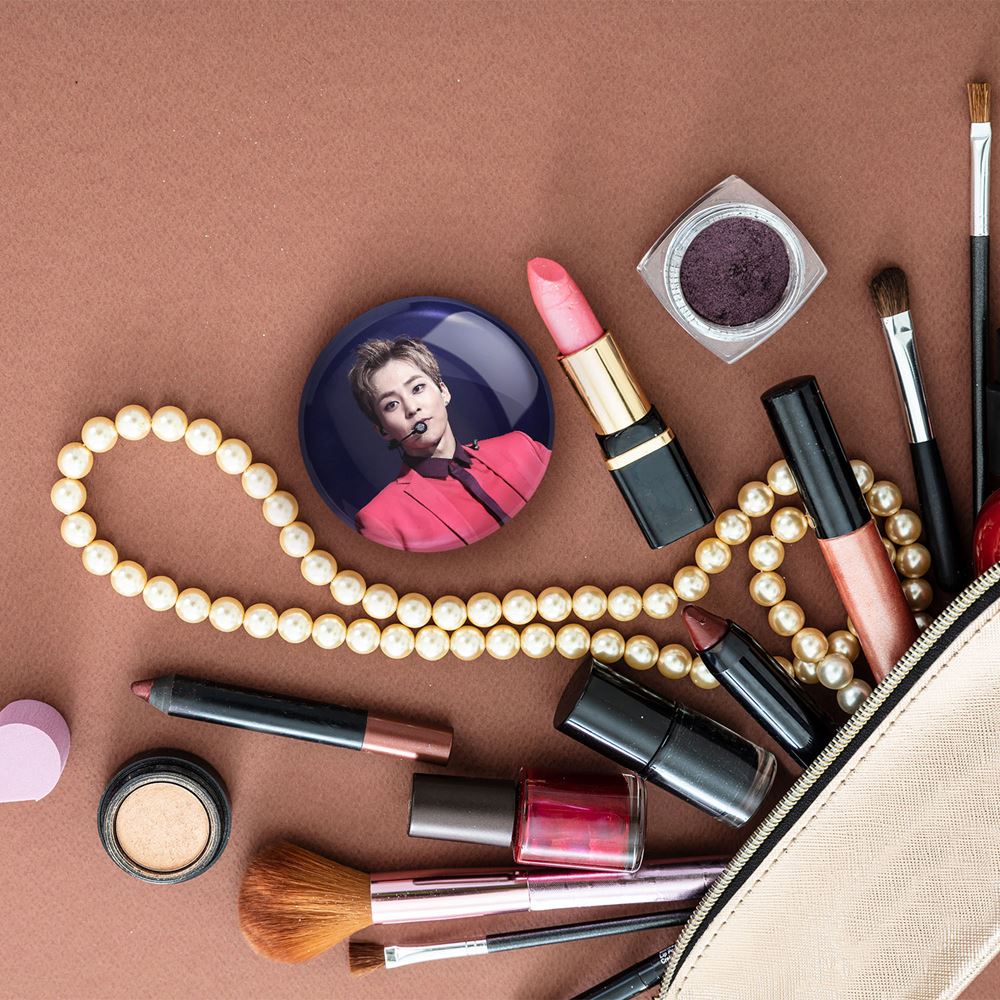 آینه های جیبی شیومین گروه اکسو EXO خندالو دایره ای به قطر 7.5 سانتی متر می باشد که نه خیلی بزرگ و غیر قابل استفاده در کیف آرایشی ست و نه خیلی کوچک که تصویر خاصی در آن مشاهده نشود. سایزی استاندارد و کارآمد دارد و مناسب قرار گیری در کیف لوازم آرایش و کیف های کوچک دستی نیز هست.
