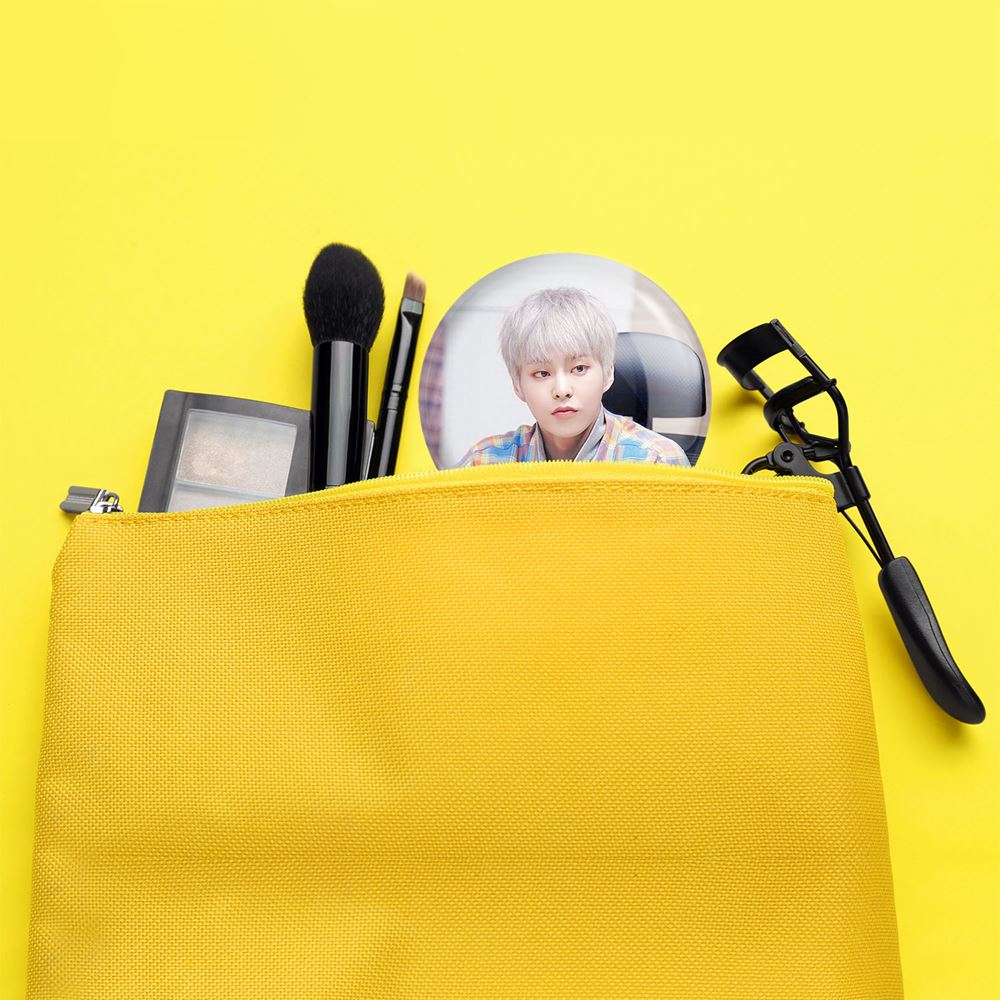 آینه های جیبی شیومین گروه اکسو EXO خندالو دایره ای به قطر 7.5 سانتی متر می باشد که نه خیلی بزرگ و غیر قابل استفاده در کیف آرایشی ست و نه خیلی کوچک که تصویر خاصی در آن مشاهده نشود. سایزی استاندارد و کارآمد دارد و مناسب قرار گیری در کیف لوازم آرایش و کیف های کوچک دستی نیز هست.