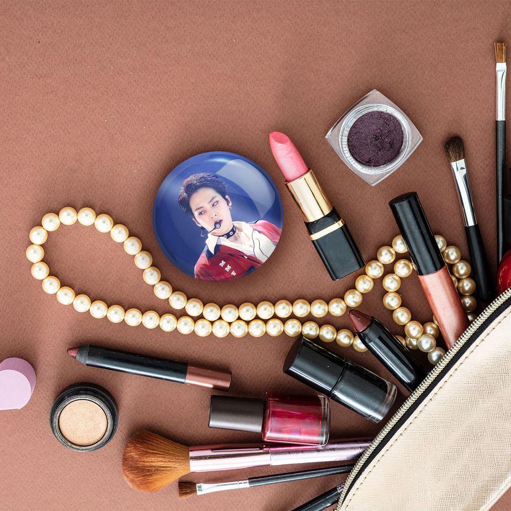 آینه های جیبی شیومین گروه اکسو EXO خندالو دایره ای به قطر 7.5 سانتی متر می باشد که نه خیلی بزرگ و غیر قابل استفاده در کیف آرایشی ست و نه خیلی کوچک که تصویر خاصی در آن مشاهده نشود. سایزی استاندارد و کارآمد دارد و مناسب قرار گیری در کیف لوازم آرایش و کیف های کوچک دستی نیز هست.