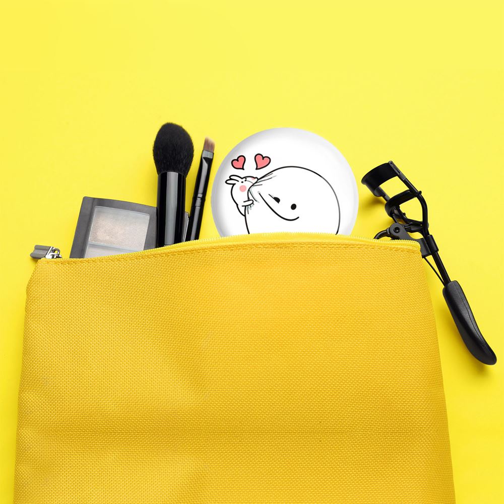 آینه های جیبی عاشقانه خندالو دایره ای به قطر 7.5 سانتی متر می باشد که نه خیلی بزرگ و غیر قابل استفاده در کیف آرایشی ست و نه خیلی کوچک که تصویر خاصی در آن مشاهده نشود. سایزی استاندارد و کارآمد دارد و مناسب قرار گیری در کیف لوازم آرایش و کیف های کوچک دستی نیز هست.