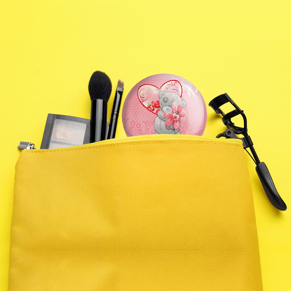 آینه های جیبی عاشقانه خندالو دایره ای به قطر 7.5 سانتی متر می باشد که نه خیلی بزرگ و غیر قابل استفاده در کیف آرایشی ست و نه خیلی کوچک که تصویر خاصی در آن مشاهده نشود. سایزی استاندارد و کارآمد دارد و مناسب قرار گیری در کیف لوازم آرایش و کیف های کوچک دستی نیز هست.
