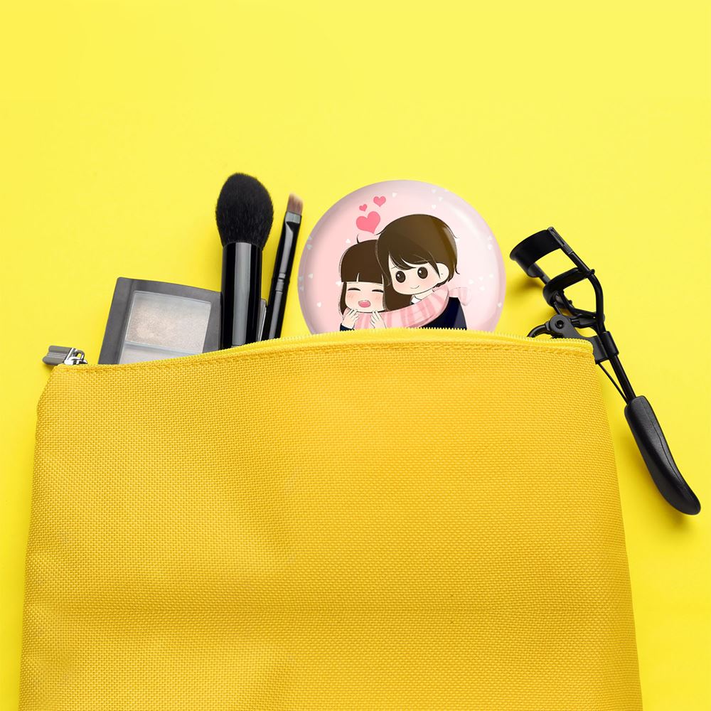 آینه های جیبی عاشقانه خندالو دایره ای به قطر 7.5 سانتی متر می باشد که نه خیلی بزرگ و غیر قابل استفاده در کیف آرایشی ست و نه خیلی کوچک که تصویر خاصی در آن مشاهده نشود. سایزی استاندارد و کارآمد دارد و مناسب قرار گیری در کیف لوازم آرایش و کیف های کوچک دستی نیز هست.