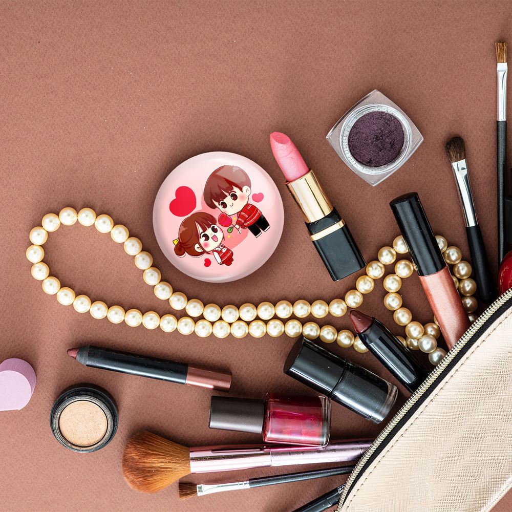 آینه های جیبی عاشقانه خندالو دایره ای به قطر 7.5 سانتی متر می باشد که نه خیلی بزرگ و غیر قابل استفاده در کیف آرایشی ست و نه خیلی کوچک که تصویر خاصی در آن مشاهده نشود. سایزی استاندارد و کارآمد دارد و مناسب قرار گیری در کیف لوازم آرایش و کیف های کوچک دستی نیز هست.
