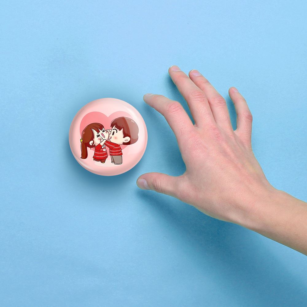 آینه های جیبی عاشقانه خندالو دایره ای به قطر 7.5 سانتی متر می باشد که نه خیلی بزرگ و غیر قابل استفاده در کیف آرایشی ست و نه خیلی کوچک که تصویر خاصی در آن مشاهده نشود. سایزی استاندارد و کارآمد دارد و مناسب قرار گیری در کیف لوازم آرایش و کیف های کوچک دستی نیز هست.