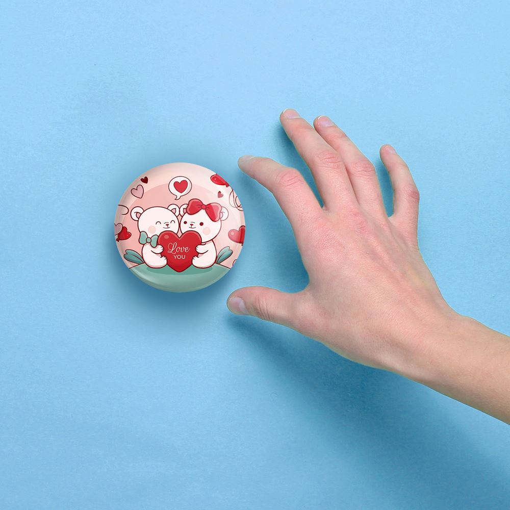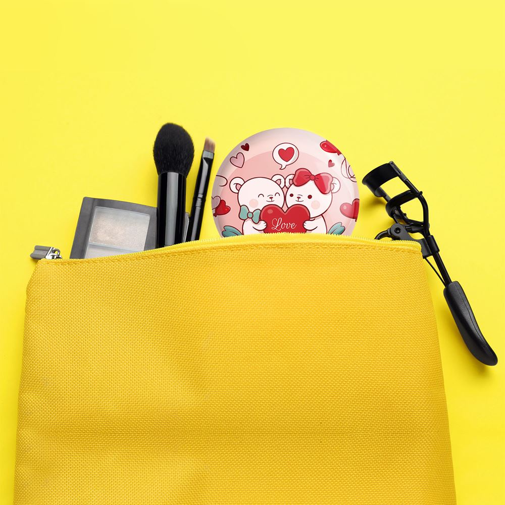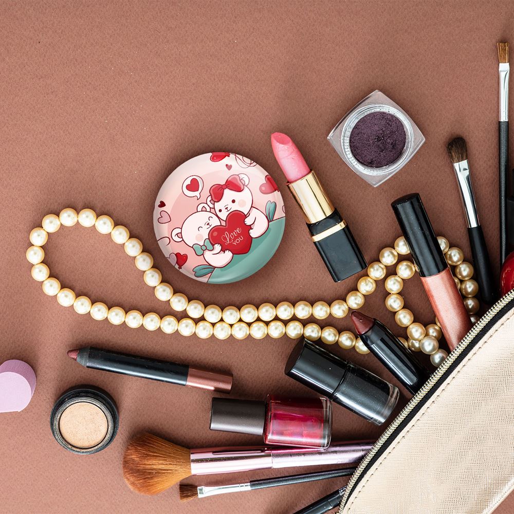 آینه های جیبی عاشقانه خندالو دایره ای به قطر 7.5 سانتی متر می باشد که نه خیلی بزرگ و غیر قابل استفاده در کیف آرایشی ست و نه خیلی کوچک که تصویر خاصی در آن مشاهده نشود. سایزی استاندارد و کارآمد دارد و مناسب قرار گیری در کیف لوازم آرایش و کیف های کوچک دستی نیز هست.
