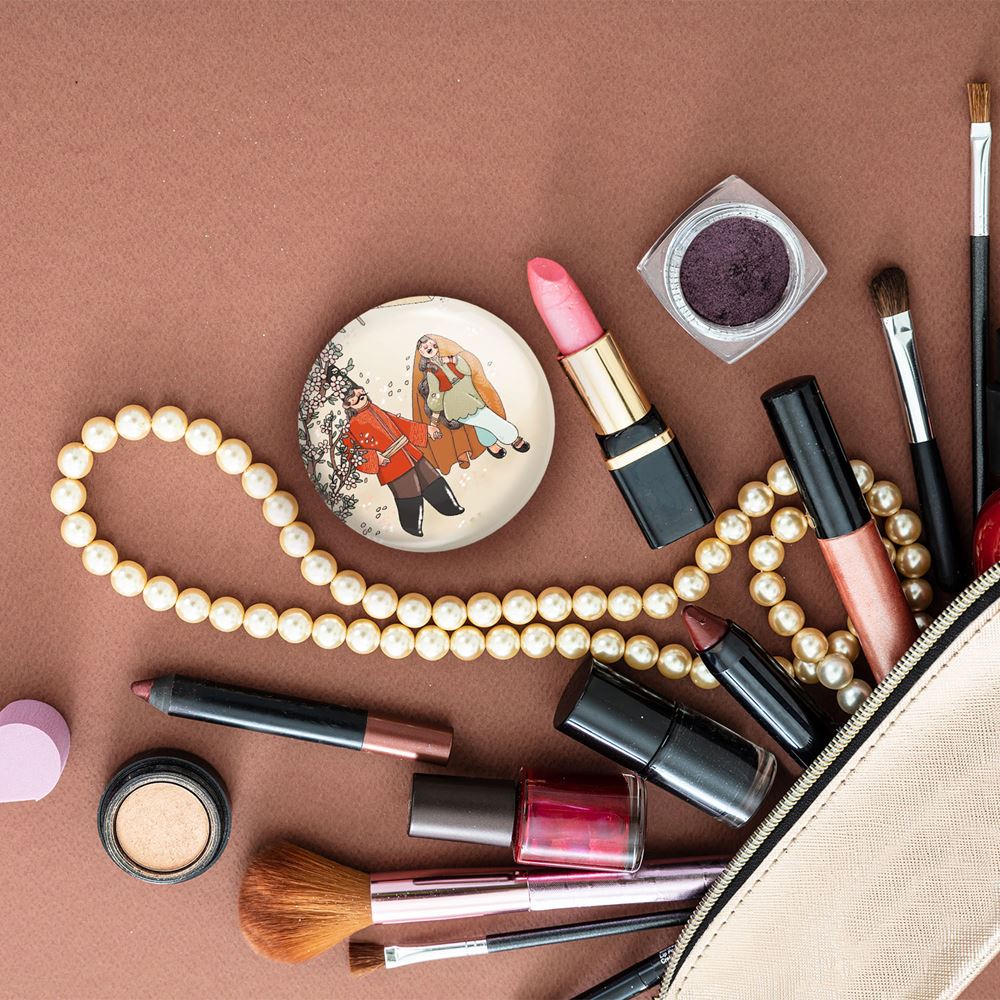 آینه های جیبی عاشقانه خندالو دایره ای به قطر 7.5 سانتی متر می باشد که نه خیلی بزرگ و غیر قابل استفاده در کیف آرایشی ست و نه خیلی کوچک که تصویر خاصی در آن مشاهده نشود. سایزی استاندارد و کارآمد دارد و مناسب قرار گیری در کیف لوازم آرایش و کیف های کوچک دستی نیز هست.