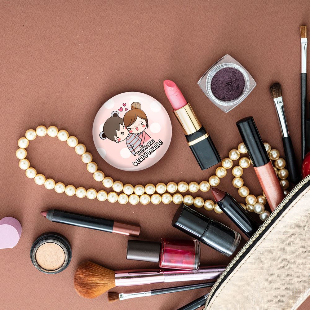آینه های جیبی عاشقانه خندالو دایره ای به قطر 7.5 سانتی متر می باشد که نه خیلی بزرگ و غیر قابل استفاده در کیف آرایشی ست و نه خیلی کوچک که تصویر خاصی در آن مشاهده نشود. سایزی استاندارد و کارآمد دارد و مناسب قرار گیری در کیف لوازم آرایش و کیف های کوچک دستی نیز هست.