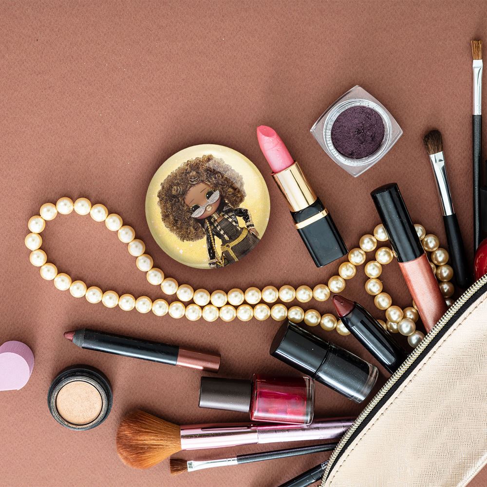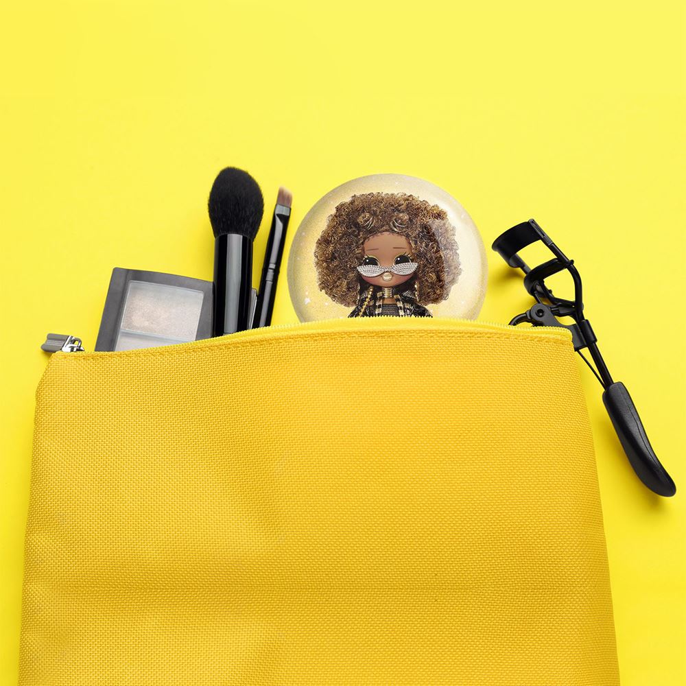 آینه های جیبی عروسک ال او ال LOL خندالو دایره ای به قطر 7.5 سانتی متر می باشد که نه خیلی بزرگ و غیر قابل استفاده در کیف آرایشی ست و نه خیلی کوچک که تصویر خاصی در آن مشاهده نشود. سایزی استاندارد و کارآمد دارد و مناسب قرار گیری در کیف لوازم آرایش و کیف های کوچک دستی نیز هست.