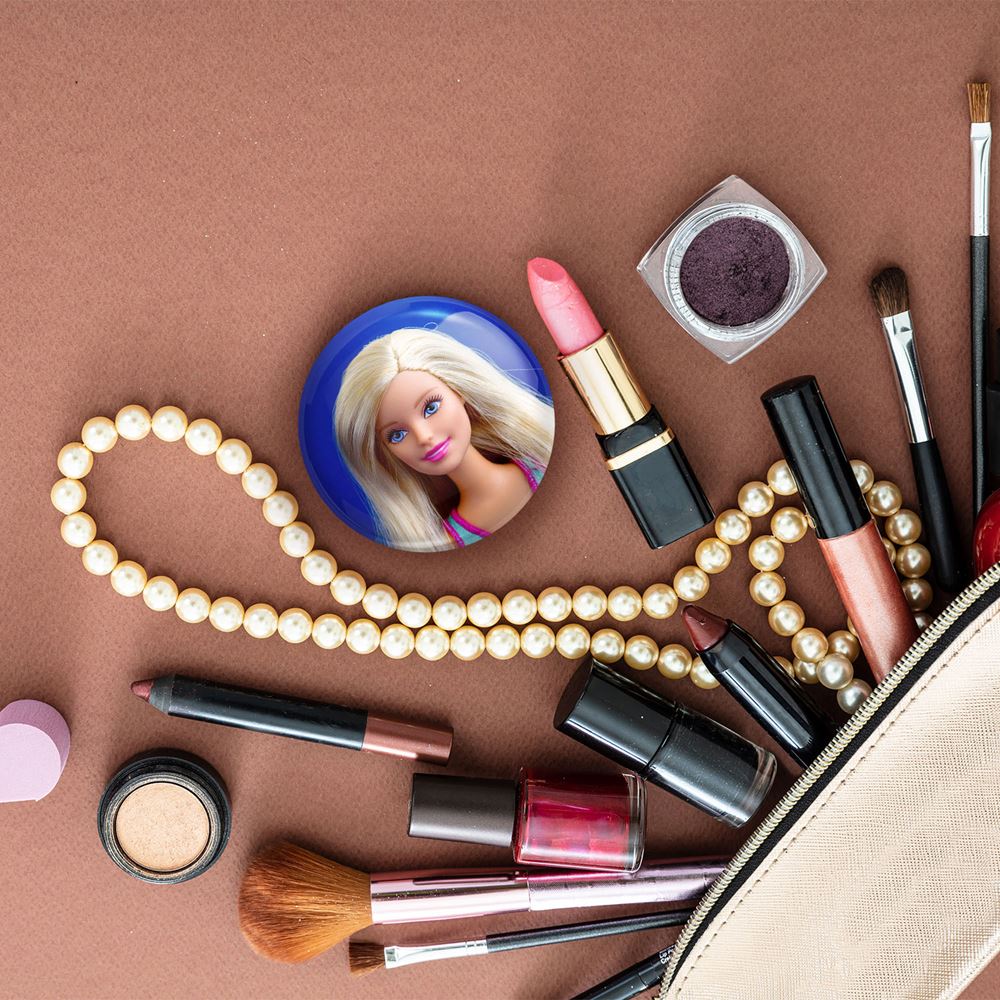 آینه های جیبی عروسک باربی خندالو دایره ای به قطر 7.5 سانتی متر می باشد که نه خیلی بزرگ و غیر قابل استفاده در کیف آرایشی ست و نه خیلی کوچک که تصویر خاصی در آن مشاهده نشود. سایزی استاندارد و کارآمد دارد و مناسب قرار گیری در کیف لوازم آرایش و کیف های کوچک دستی نیز هست.