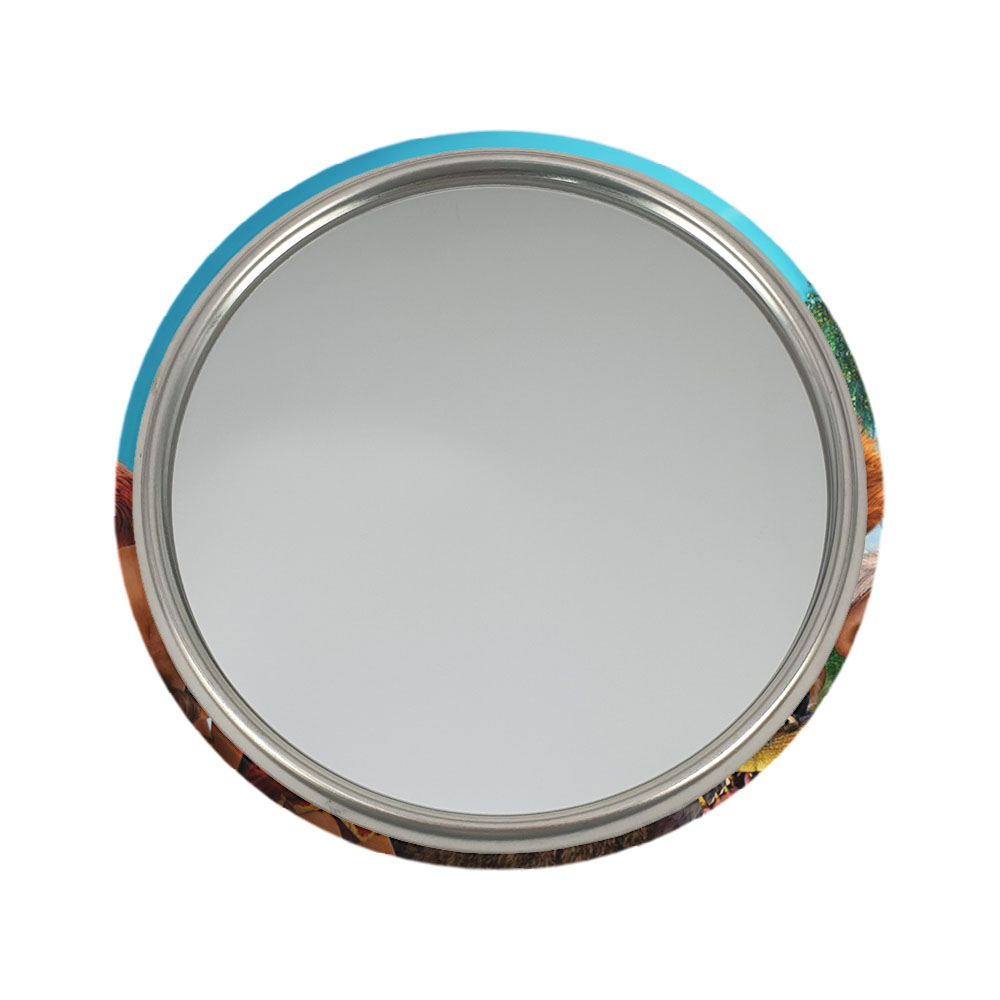 آینه های جیبی غارنشینان عصر جدید خندالو دایره ای به قطر 7.5 سانتی متر می باشد که نه خیلی بزرگ و غیر قابل استفاده در کیف آرایشی ست و نه خیلی کوچک که تصویر خاصی در آن مشاهده نشود. سایزی استاندارد و کارآمد دارد و مناسب قرار گیری در کیف لوازم آرایش و کیف های کوچک دستی نیز هست.