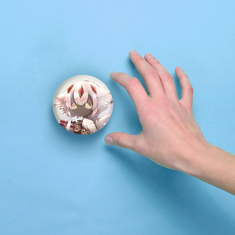 آینه های جیبی فایوپا انیمه ساخته شده در پرتگاه Made in Abyss خندالو دایره ای به قطر 7.5 سانتی متر می باشد که نه خیلی بزرگ و غیر قابل استفاده در کیف آرایشی ست و نه خیلی کوچک که تصویر خاصی در آن مشاهده نشود. سایزی استاندارد و کارآمد دارد و مناسب قرار گیری در کیف لوازم آرایش و کیف های کوچک دستی نیز هست. بدنه ی آینه جیبی فایوپا انیمه ساخته شده در پرتگاه Made in Abyss در قسمتی که آینه را در بر گرفته فلزی بوده و ظاهر براق و بسیار زیبایی دارد. چاپ طرح در پشت آینه بوسیله چاپگرهای دیجیتال شش رنگ با شفافیت و کیفیتی مثال زدنی انجام گرفته و با روکش لمینت حرارتی پوشیده شده که در مقابل آسیب و خط و خش مقاوم بوده و کیفیت بالایی دارد. آینه های جیبی فایوپا انیمه ساخته شده در پرتگاه Made in Abyss خندالو با تنوع طرحی بسیار بالا، سلیقه هر نوع مخاطبی را تامین میکند.