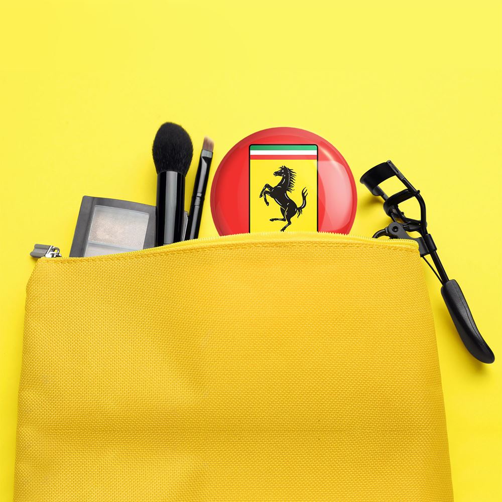 آینه های جیبی فراری Ferrari خندالو دایره ای به قطر 7.5 سانتی متر می باشد که نه خیلی بزرگ و غیر قابل استفاده در کیف آرایشی ست و نه خیلی کوچک که تصویر خاصی در آن مشاهده نشود. سایزی استاندارد و کارآمد دارد و مناسب قرار گیری در کیف لوازم آرایش و کیف های کوچک دستی نیز هست.