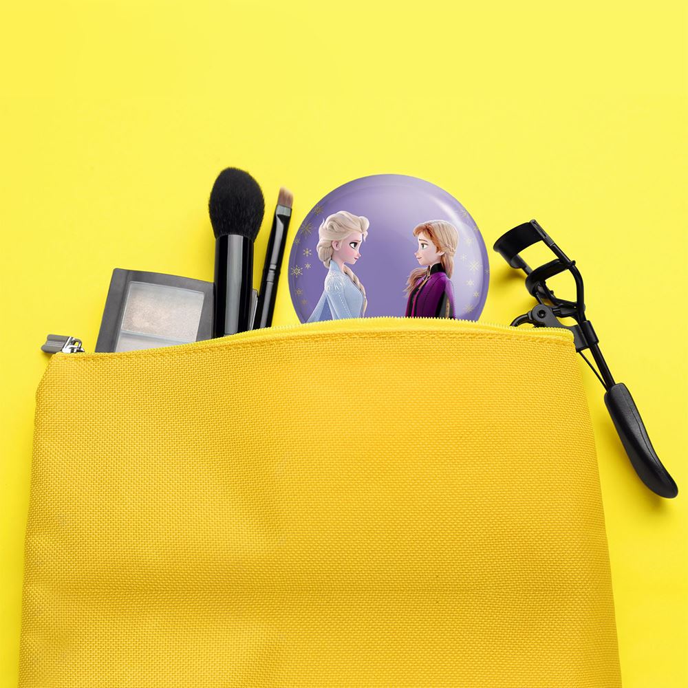 آینه های جیبی فروزن السا و آنا خندالو دایره ای به قطر 7.5 سانتی متر می باشد که نه خیلی بزرگ و غیر قابل استفاده در کیف آرایشی ست و نه خیلی کوچک که تصویر خاصی در آن مشاهده نشود. سایزی استاندارد و کارآمد دارد و مناسب قرار گیری در کیف لوازم آرایش و کیف های کوچک دستی نیز هست.