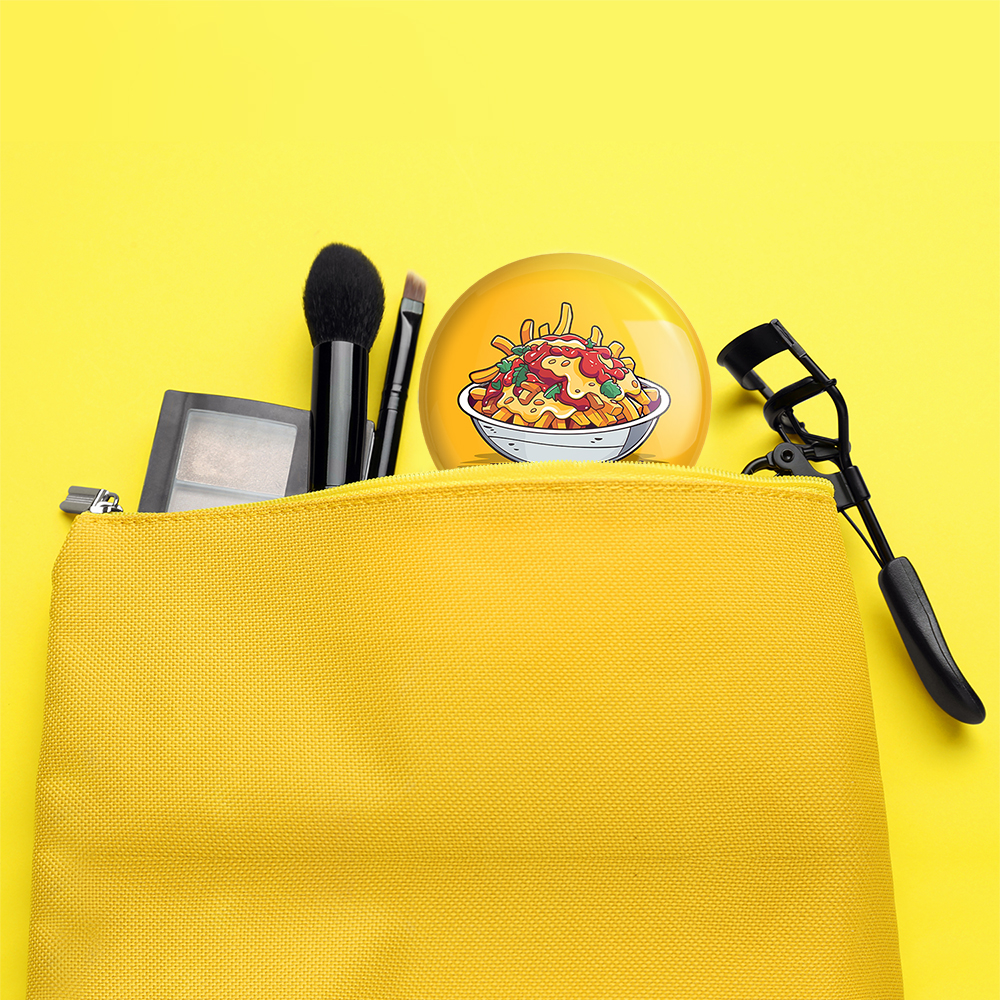 آینه های جیبی فست فود (Fast Food) خندالو دایره ای به قطر 7.5 سانتی متر می باشد که نه خیلی بزرگ و غیر قابل استفاده در کیف آرایشی ست و نه خیلی کوچک که تصویر خاصی در آن مشاهده نشود. سایزی استاندارد و کارآمد دارد و مناسب قرار گیری در کیف لوازم آرایش و کیف های کوچک دستی نیز هست.