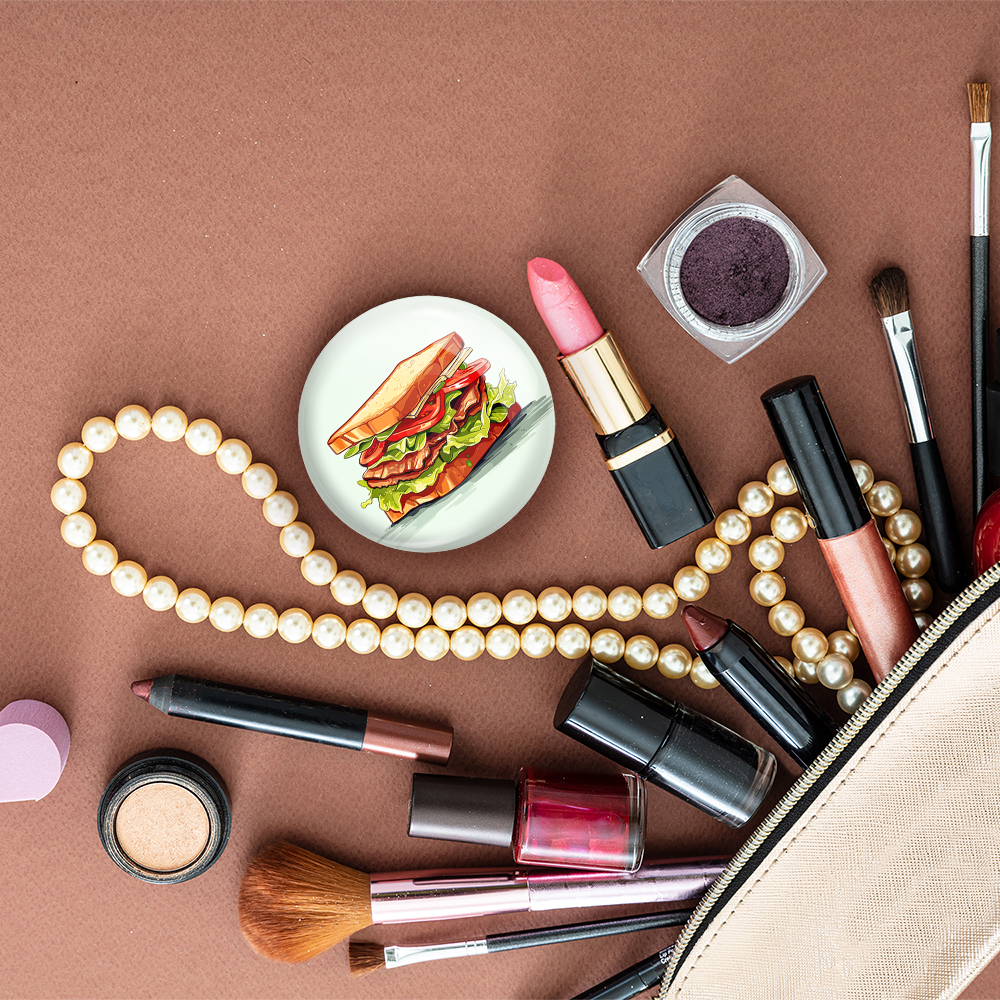 آینه های جیبی فست فود (Fast Food) خندالو دایره ای به قطر 7.5 سانتی متر می باشد که نه خیلی بزرگ و غیر قابل استفاده در کیف آرایشی ست و نه خیلی کوچک که تصویر خاصی در آن مشاهده نشود. سایزی استاندارد و کارآمد دارد و مناسب قرار گیری در کیف لوازم آرایش و کیف های کوچک دستی نیز هست.