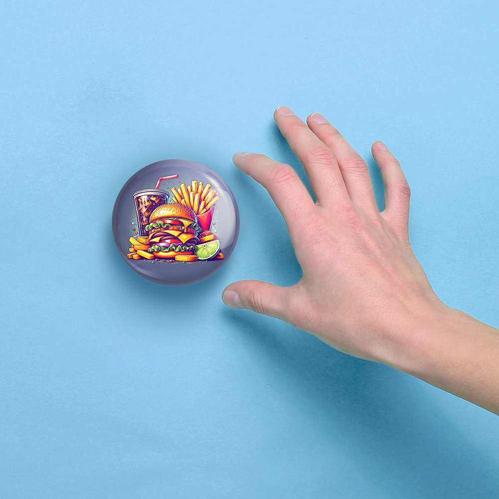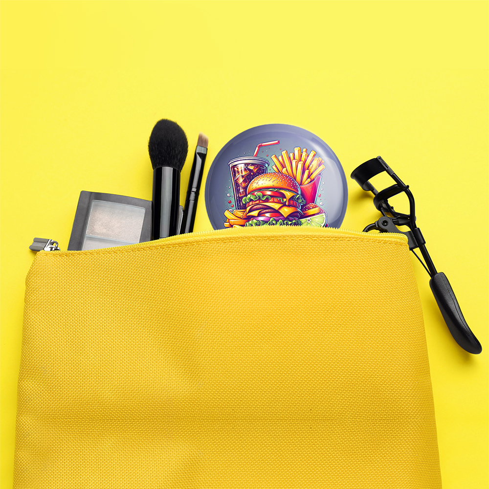 آینه های جیبی فست فود (Fast Food) خندالو دایره ای به قطر 7.5 سانتی متر می باشد که نه خیلی بزرگ و غیر قابل استفاده در کیف آرایشی ست و نه خیلی کوچک که تصویر خاصی در آن مشاهده نشود. سایزی استاندارد و کارآمد دارد و مناسب قرار گیری در کیف لوازم آرایش و کیف های کوچک دستی نیز هست.