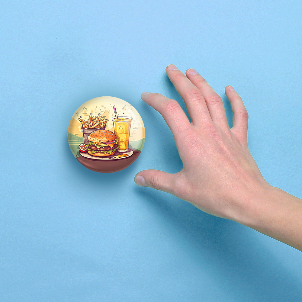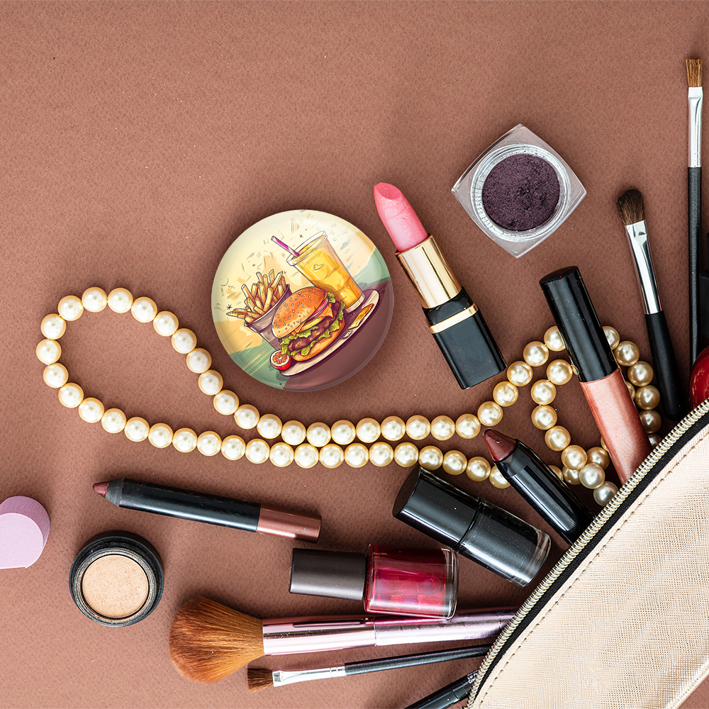آینه های جیبی فست فود (Fast Food) خندالو دایره ای به قطر 7.5 سانتی متر می باشد که نه خیلی بزرگ و غیر قابل استفاده در کیف آرایشی ست و نه خیلی کوچک که تصویر خاصی در آن مشاهده نشود. سایزی استاندارد و کارآمد دارد و مناسب قرار گیری در کیف لوازم آرایش و کیف های کوچک دستی نیز هست.