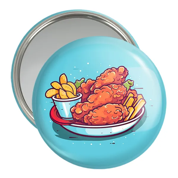 آینه های جیبی فست فود (Fast Food) خندالو دایره ای به قطر 7.5 سانتی متر می باشد که نه خیلی بزرگ و غیر قابل استفاده در کیف آرایشی ست و نه خیلی کوچک که تصویر خاصی در آن مشاهده نشود. سایزی استاندارد و کارآمد دارد و مناسب قرار گیری در کیف لوازم آرایش و کیف های کوچک دستی نیز هست.