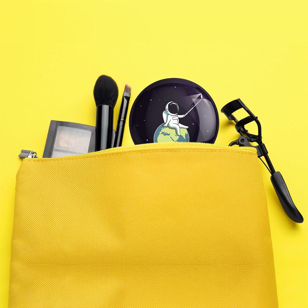 آینه های جیبی فضانورد خندالو دایره ای به قطر 7.5 سانتی متر می باشد که نه خیلی بزرگ و غیر قابل استفاده در کیف آرایشی ست و نه خیلی کوچک که تصویر خاصی در آن مشاهده نشود. سایزی استاندارد و کارآمد دارد و مناسب قرار گیری در کیف لوازم آرایش و کیف های کوچک دستی نیز هست.