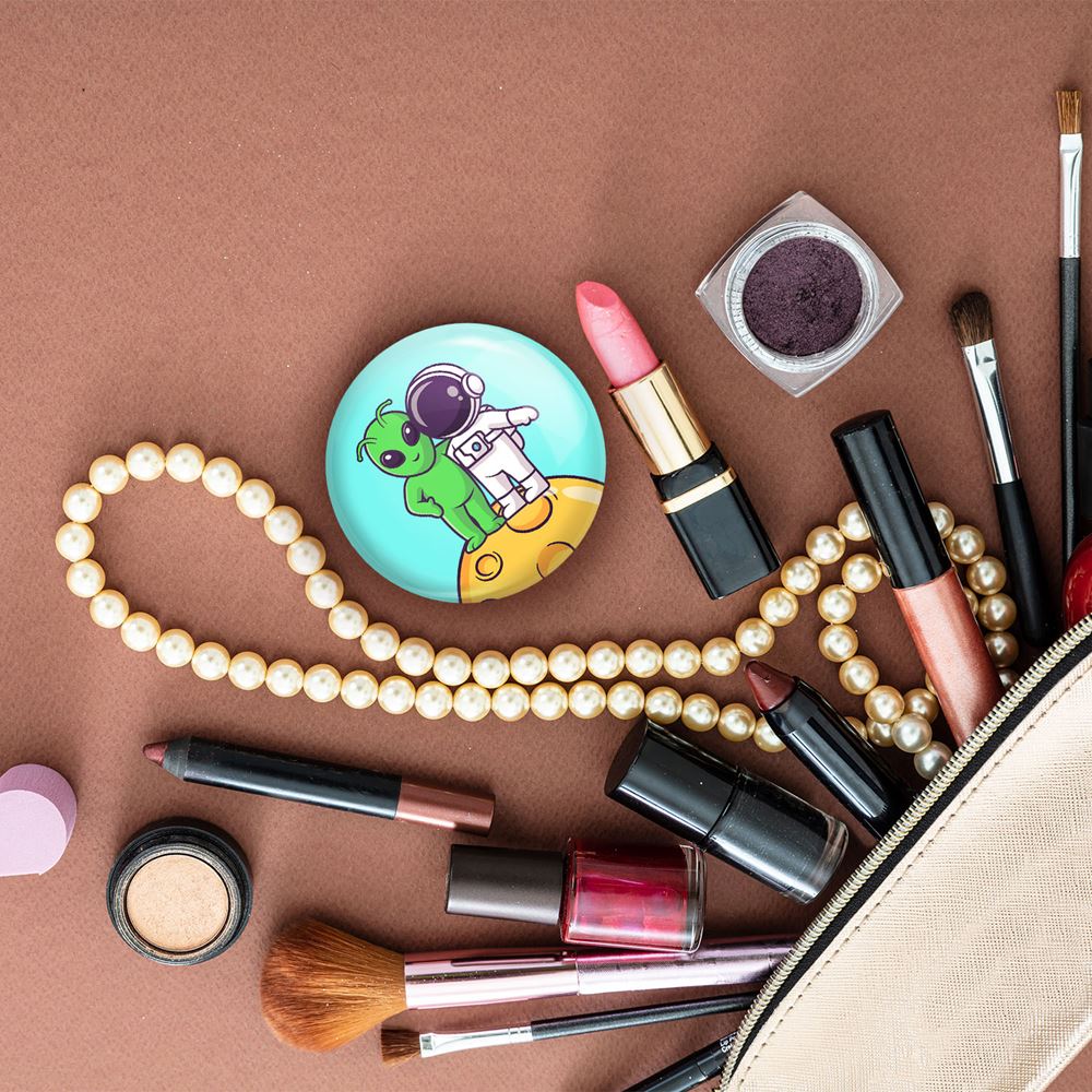 آینه های جیبی فضانورد خندالو دایره ای به قطر 7.5 سانتی متر می باشد که نه خیلی بزرگ و غیر قابل استفاده در کیف آرایشی ست و نه خیلی کوچک که تصویر خاصی در آن مشاهده نشود. سایزی استاندارد و کارآمد دارد و مناسب قرار گیری در کیف لوازم آرایش و کیف های کوچک دستی نیز هست.