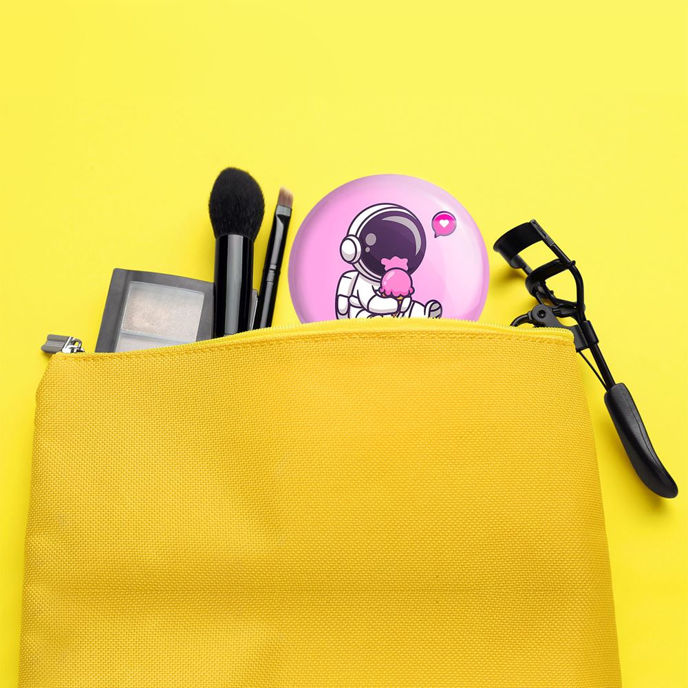 آینه های جیبی فضانورد خندالو دایره ای به قطر 7.5 سانتی متر می باشد که نه خیلی بزرگ و غیر قابل استفاده در کیف آرایشی ست و نه خیلی کوچک که تصویر خاصی در آن مشاهده نشود. سایزی استاندارد و کارآمد دارد و مناسب قرار گیری در کیف لوازم آرایش و کیف های کوچک دستی نیز هست.